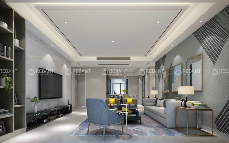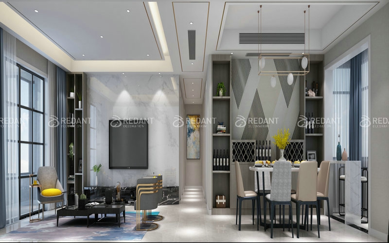 本案是一个注重配饰的居住空间。然而重配饰并不代表繁琐,得在合适的地方放上合适的配饰。餐厅布局紧凑,餐桌上精致的餐具和蜡烛诠释一份浓浓的浪漫。书房的深色调彰显主人冷静客观的性格。客厅的布置温馨静谧,将家的港湾渗透到每个人心中,激荡起心底暖暖的涟漪。