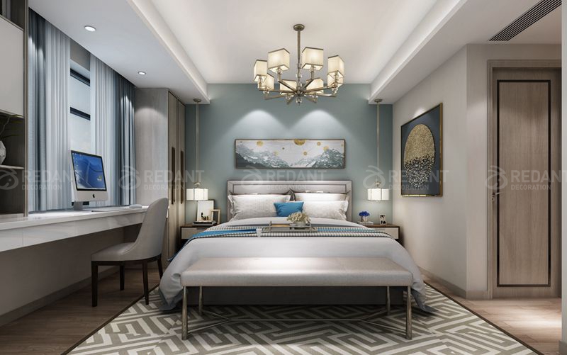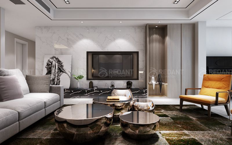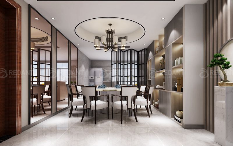 对于其户型的优点,让客餐厅更容易相辅相成。为了让客厅和餐厅结合的更好,顶面的吊顶让餐厅和客厅合二为一,显得方正空间敞亮,顶面做了层次分明,加入金属线条的曾差。电视背景、餐厅背景两个背景一个空间相辅相成,更显得轻巧奢华,给业主一种年轻且有活力的风格,显得更有个性。