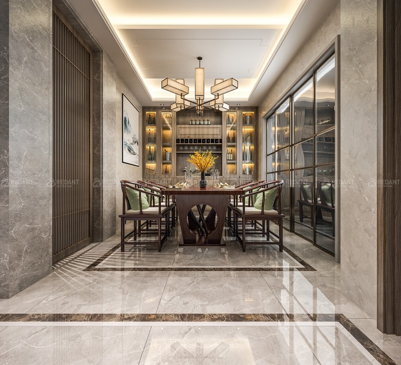 本案整体空间以浅色砖和木色相结合,渲染出一种纯净的典雅情怀,大量运用木线条及仿大理石砖作为墙身的主材,以地面的石材和地板刻画出极具品味的艺术空间, 本次案例以经典的设计,独到而考究的选材,精细的品质而注定将成为又一个经典案例。空间布局以大空间的划分为主,本案例柱体位置居中,在保留的情况下,用对称、遮挡等方法加以修饰,使整个户型的空间关系变得紧凑大气,各个空间以其独特的元素存在。
