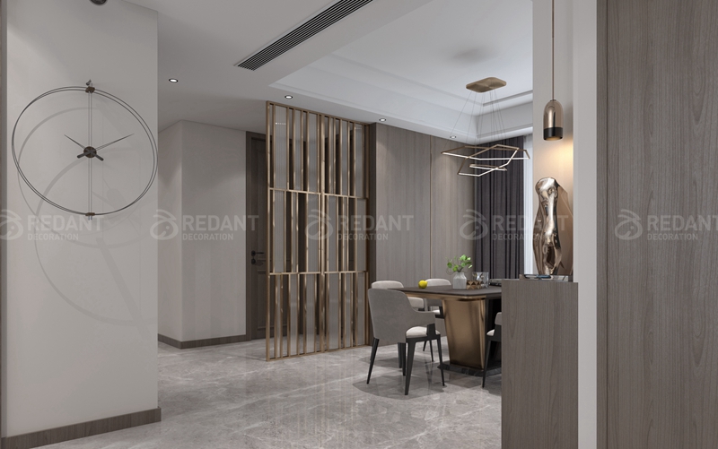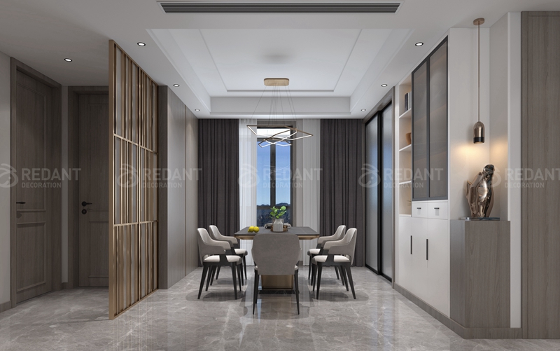 电视背景墙的处理大气明朗,采用有纹理的大理石来强调简约感,爵士白大理石地台搭配胡桃木电视柜,加之金属质感软装进行渲染,不单一不复杂。拼色的纹理地毯上一对简约圆形茶几错落有致,高低组合的形式灵活而有层次。餐客一体的设计,带来了各自独立又相互包容的空间尺度。优雅黑色钢琴,弧度优美的黑色钓鱼灯,提升整个空间时尚感。别让快节奏的生活抢走了你的自由,生活是自己的,谁也拿不走。