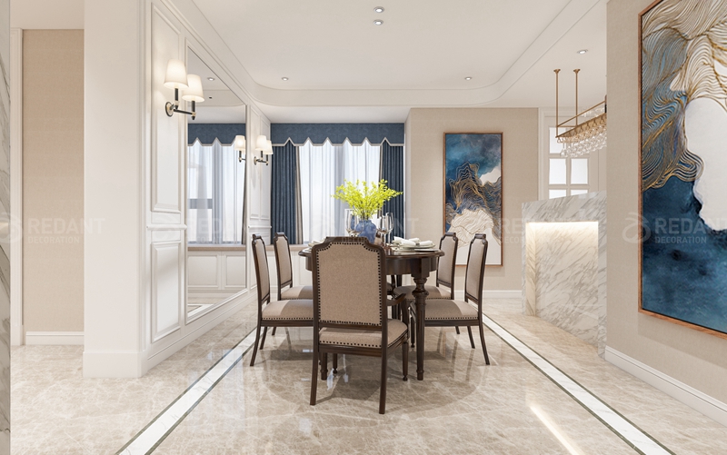本案位于园区现代大道与星港街交界处,220平米大平层。本案业主是一位成熟稳重的成功的企业家,妻子是位老师,有一个可爱的小公主,一家三口,喜欢稍微偏传统一点的美式,墙面配以驼色墙纸,素雅静谧,深棕色皮质沙发,配以亮色调单椅增加空间灵动性。业主对后期使用的材料品质比较讲究,非常注重质感与细节制作,希望可以通过材料的质感来提升整体品质感。