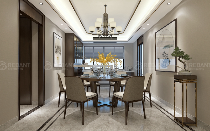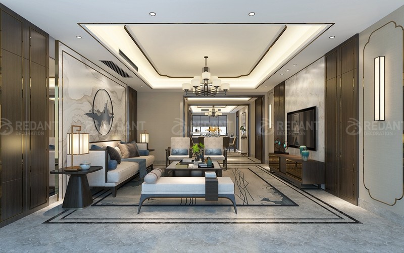 现代人的学习工作都讲求快捷、高效,于是在生活时就希望把脚步放慢,回归到轻快放松的环境中。越来越多的人对新中式风格亲睐,这就归功于新中式风格特点:新中式风格中的家具:大多是古典家具或者是现代家具与古典家具想结合。家具的颜色:主要是以深色为主,有深厚沉稳的底蕴。装饰造型:主要采用硬朗简洁的直线条,空间具有层次感。既使得中式家具古典、质朴的内涵显现,又符合现代人追求的时尚感、实用性。