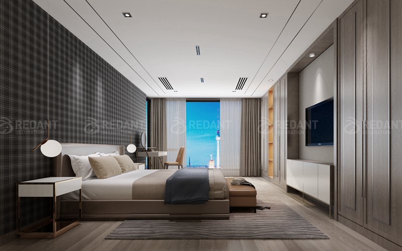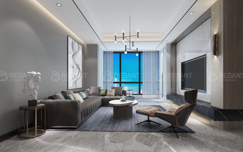 在整个方案中,没有过多的去设计硬装饰,而施工细节和材料上以及后期软装搭配上进行了一系列的细致考虑,更多的运用了设计师偏爱的块、线、面等设计手法,营造华丽空间,简约中透出业主对生活品位。