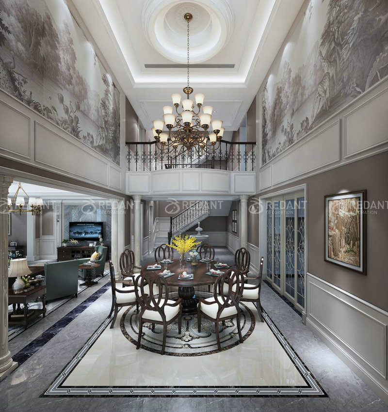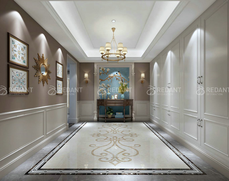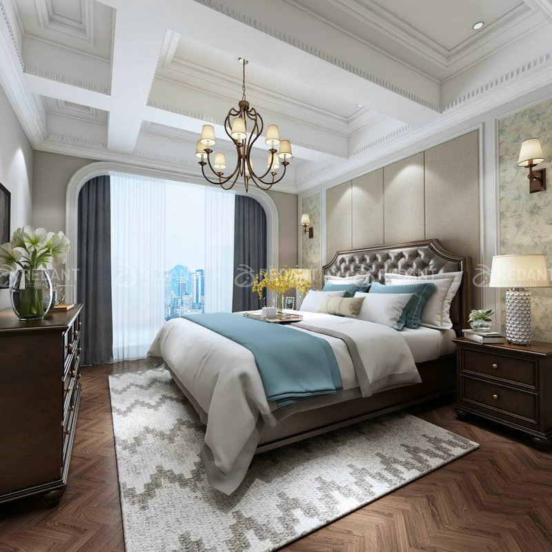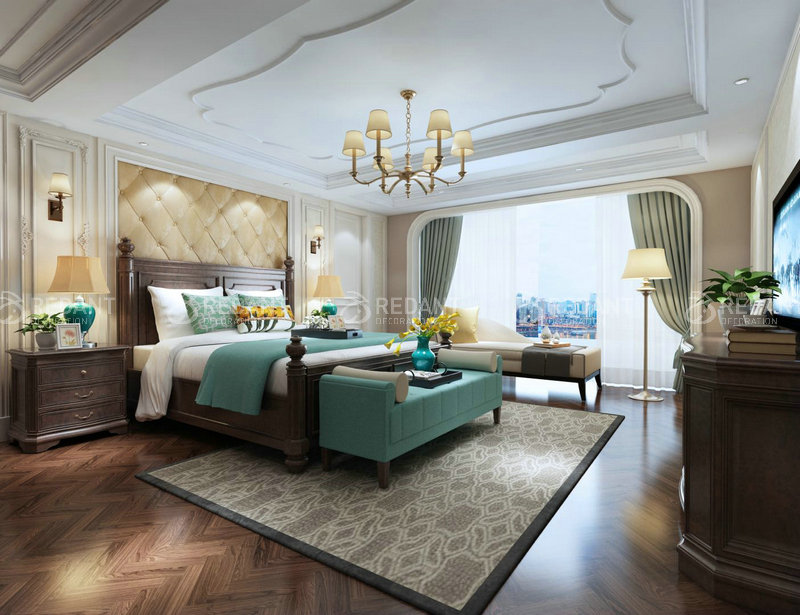 美式风格表现为追求华丽、高雅的古典风格。居室色彩主调为白色,家具为古典弯腿式,家具、门、窗漆成白色,擅用各种花饰、丰富的木线变化、富丽的窗帘帷幄是西式传统室内装饰的固定模式,空间环境多表现出华美、富丽、浪漫的气氛。注重高品质与设计感,将优雅时尚的质感结合现代材质及装饰技巧巧妙地呈现在居室中,展示着精致高端的生活态度。或简约大方,或繁复含蓄,或个性鲜明,或艺术优雅。