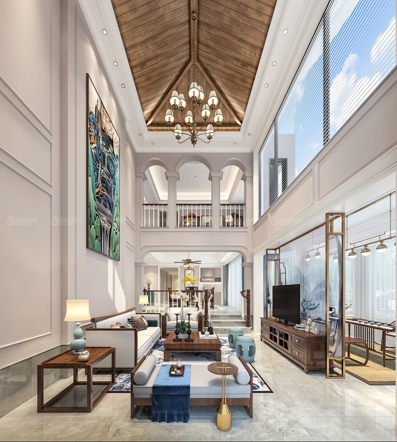 领岛别墅 | 420㎡新中式风格别墅装修效果图
