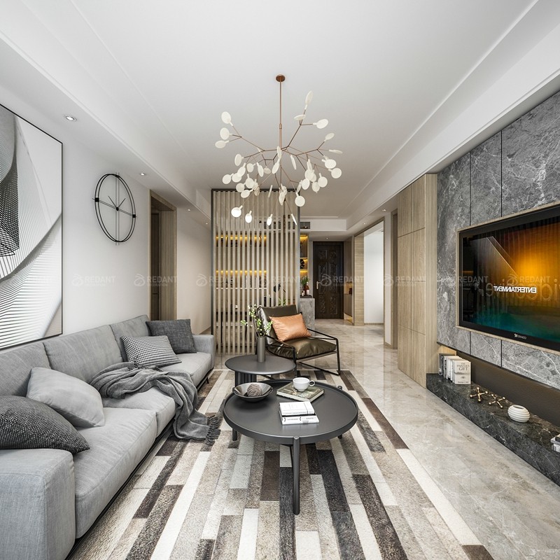 本案设计为现代风格,是比较流行的一种风格,追求时尚与潮流,非常注重居室空间的布局与使用功能的完美结合。高纯色彩的大量运用,大胆而灵活,不单是对现代风格家居的遵循,也是对业主个性的展示。