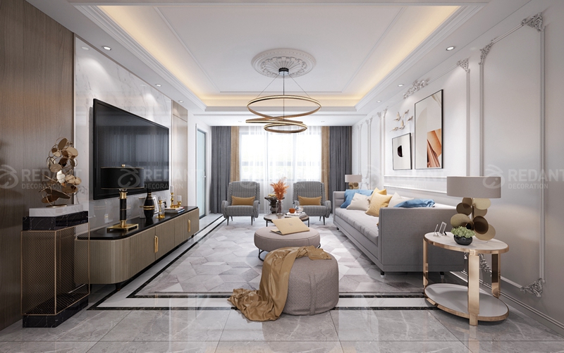 本案为现代风格,爵士白大理石的电视背景,,白色时尚简约的房门,配以浅灰色的艺术涂料,整个空间简洁大方,因业主对整体装修一定要简洁,根据户型的大小和客餐厅的比例,特意做了简单的电视背景造型,家业主比较注重儿童房空间的氛围营造,所以在儿童房区域重点做了儿童化设计,其他卧室空间不做复杂造型,以素色的艺术涂料为主,营养舒适的家居空间氛围。