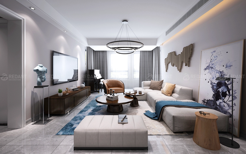 业主需求简介:中年夫妻和两个孩子居住,需要三个房间 设计说明: 本案定位现代风格,居住人群偏向于年轻化,在设计中摒弃了大量的复杂造型,以简约时尚为主。男女主人对于生活品质要求很高,做现代轻奢风格,整体的硬装考虑简单大方,沙发采用了灰色棉麻布艺,整体色调以灰色调为主。