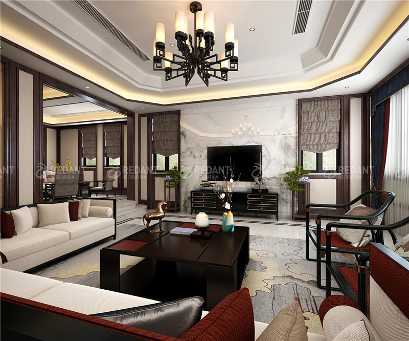 整个居室的设计采用了现代中式的手法,居室空间根据相互间的功能关系组合而成的,而且功能空间相互渗透,空间率达到最高。