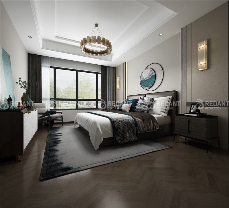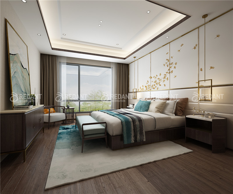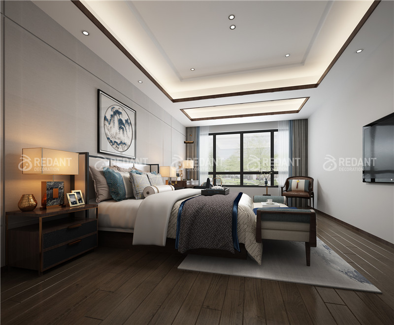 中式风格的古色古香与现代风格的简单素雅自然衔接,是生活的实用性和对传统文化的追求同时得到了满足。卧室在配饰方面更为简洁,少了许多奢侈的装饰,更加流畅地表达出传统文化的精髓。