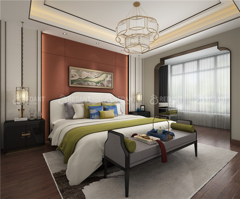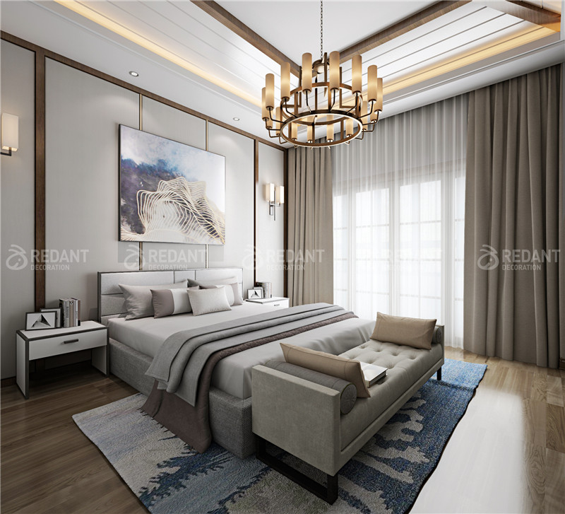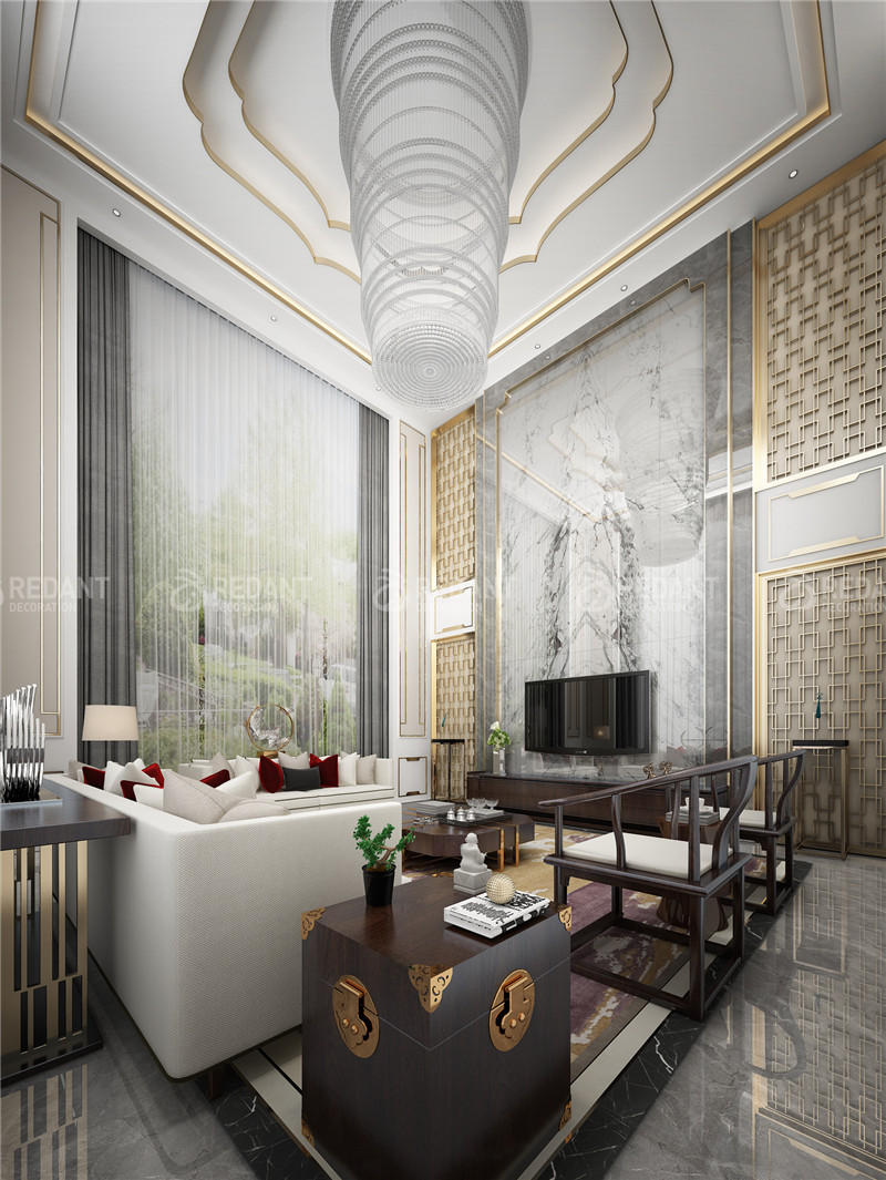 点,线,面与空间的建筑语汇有机结合,色彩与质感的搭配,材料的运用,使设计中跳动、激荡,让人感觉空间的精神以及尺度与比例关系带来的冲击感,体现出既有传统底蕴又富有前瞻性的生活品味。建筑造型优雅,装饰线条明快,颜色搭配大方,材料质感丰富,家具浑厚有力,饰品端庄典雅,古典的奢华在现代的简约中得以诠释