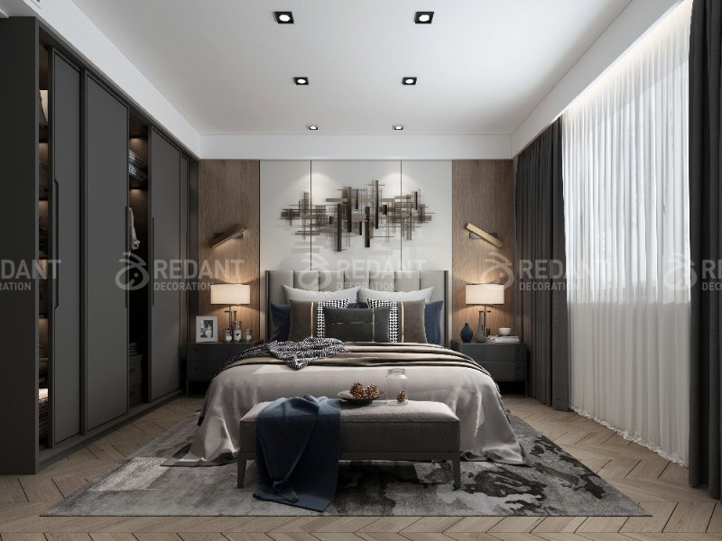 本案客户根据客户喜欢现代轻奢的感觉,把原来的老房子装修全部拆除,好多墙体全部从新规划布局,一楼增加了一个水吧区和储藏区,在二楼让每个房间都带卫生间做成套房,3楼就是书房和洗晒区,让空间更加布局合理舒适。