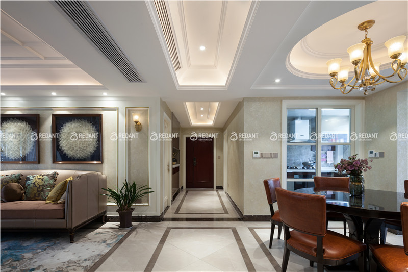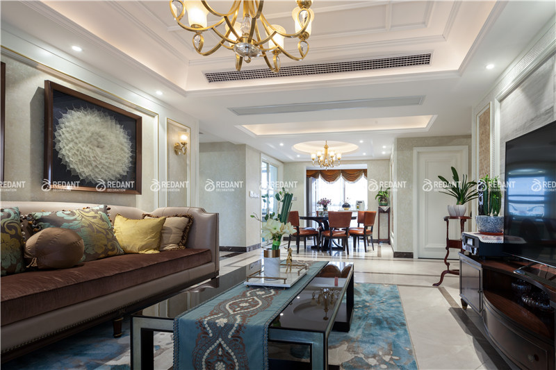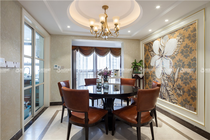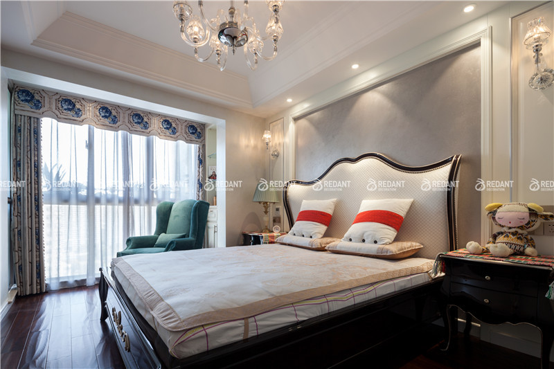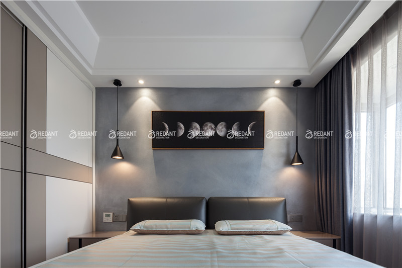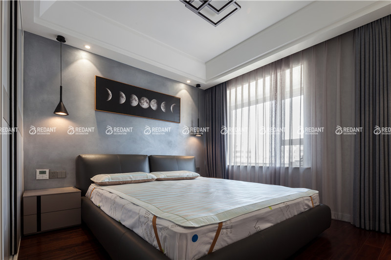 本案客户根据客户的喜好定格为后现代混搭风格,客户的女儿喜欢蓝色感觉,所以在卧室中女儿的卧室以后现代的家具与一个蓝色背景结合,既时尚又很温馨。另外一个卧室设计比较简单成稳,在色调上采用中性色彩,配上简约的护墙板线条造型,非常素雅。让主人回家有种很放松的感觉。餐厅区域把后阳台移门拆除后,定制了一个水吧台,使得生活很小资又实用,让整个空间有了延伸感。