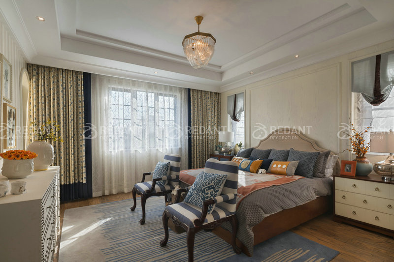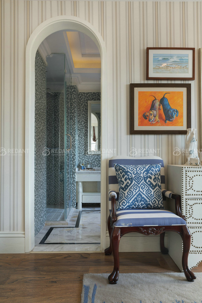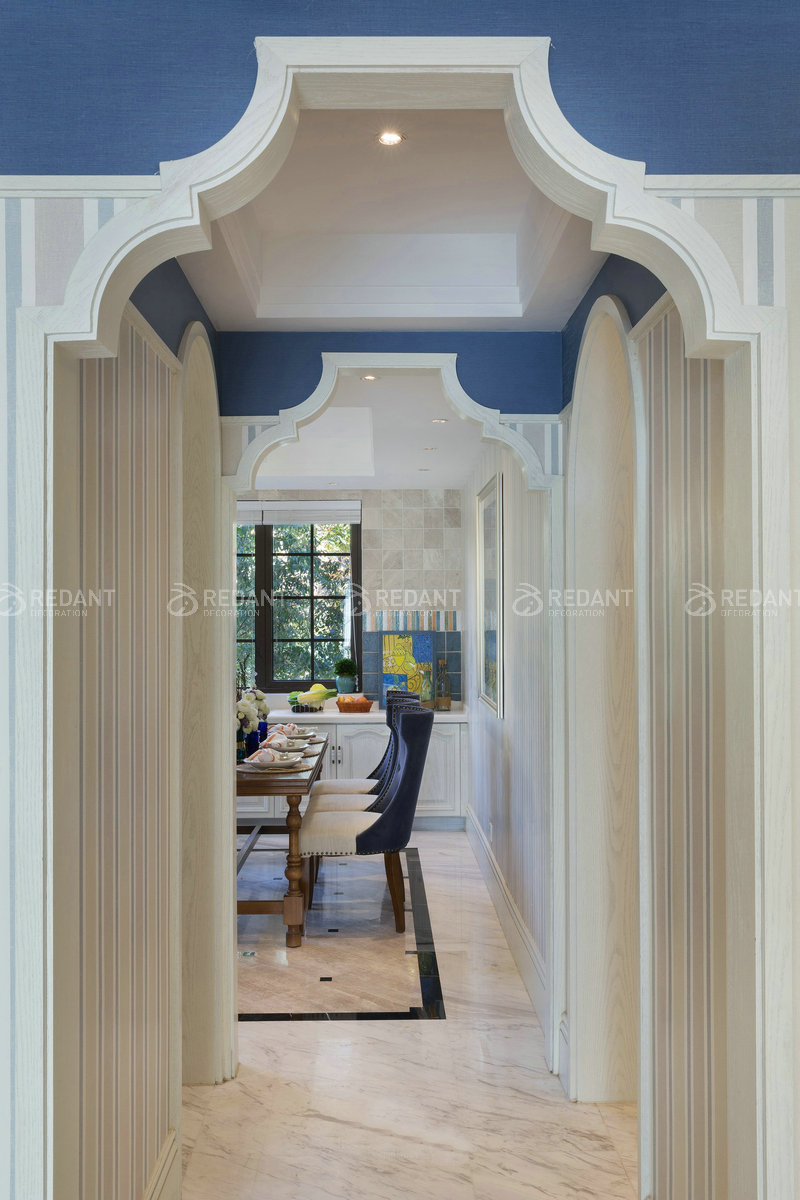 美式mission,sthyle,即加州早期传教士风格,西班牙殖民时期传入美国加州,融合当地气候人文有新变体,总体淳朴,宁静,多用曲线,圆拱,选材天然,多木料,石材,墙面采用stucco抹灰工艺,设计师深入认真研究missionsthyle原味呈现其风格特质.