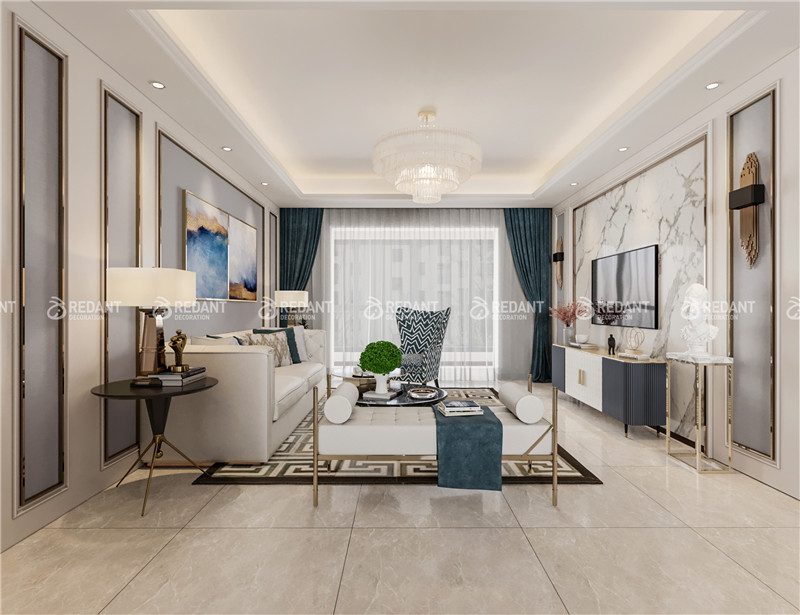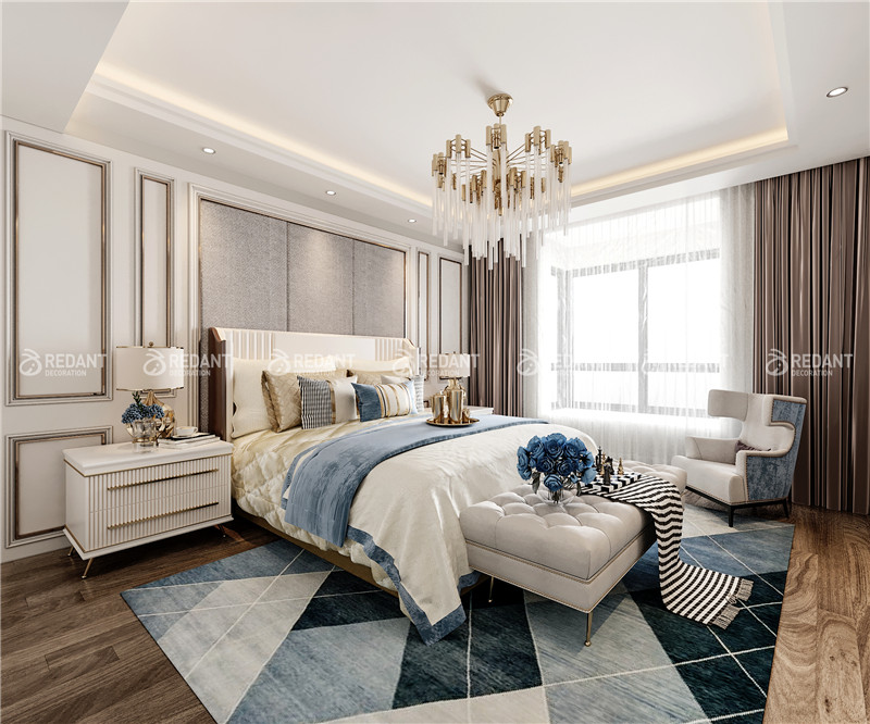 本案为世贸一期7-2705室,经过反复研讨,我们将主题定位为轻奢美式风格.局部运用白色混水线条装饰和硬包装饰。在整个户型中,摒弃过多的繁复厚重装饰,用简洁的设计笔触和创新的搭配,着重于材质、色调与空间的对话。整体给人一种干净、清新的舒适感觉。