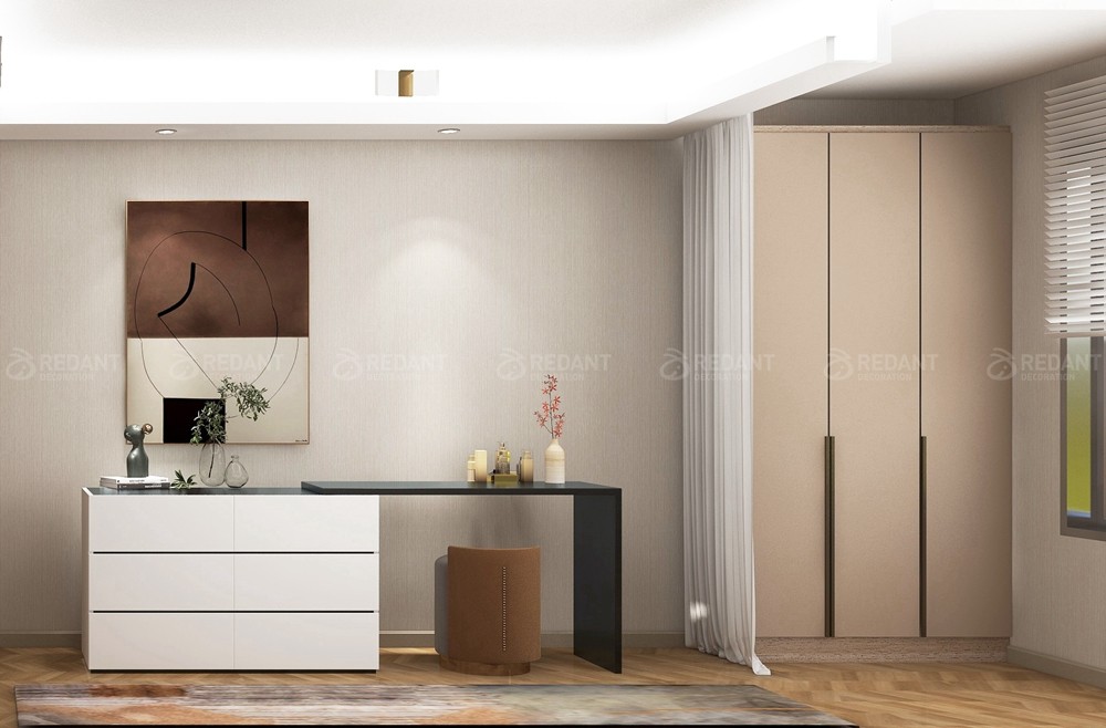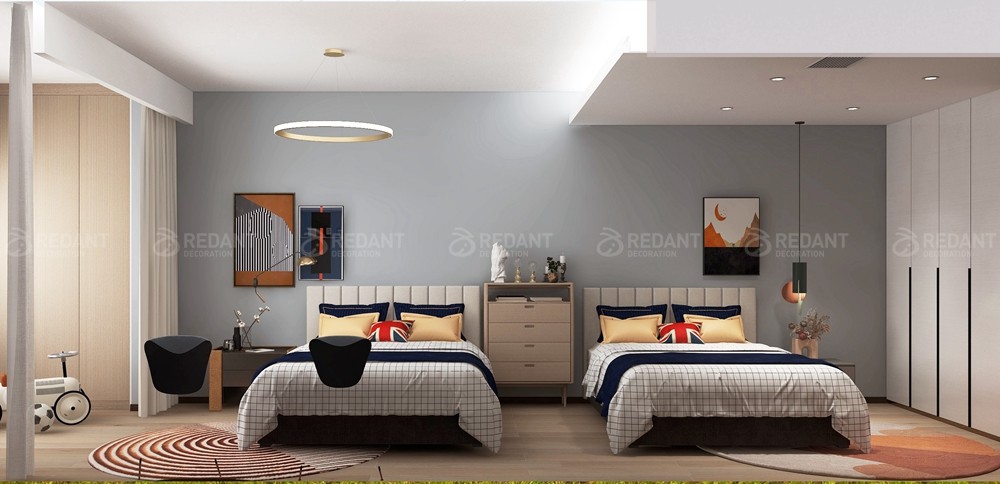 本案3室2厅1厨2卫的平层住宅. 环境优美,业主比较时尚,一进入客厅,让人感觉特别轻松,有种十分愉悦的居家氛围,而且又不失品味,硬装的设计,还有软装的搭配都让人觉得十分耐看, 简洁的硬装,搭配色彩统一的家具,柔软的质感,简约自然,温馨舒适, 两个小矮桌拼成的茶几,个性十足,还有印入眼帘的鹿,姿态优雅、安静、恬淡,体现出了屋主追求自然、安静、闲逸的心情, 要说餐厅的亮点,其实完全被这个餐厅的吊灯吸引,第一眼感觉它非常的创意且个性化十足, 餐边柜选的是宜家款式的柜子,外观简洁,但是实用,墙面用挂画装饰点缀, 真正的爱,意味着无比的自由。浅色卷起的衣柜帘子,随意而洒脱, 清新素雅的床铺和床头背景墙,让卧室里缓缓流出清澈的光, 清晨的阳光穿过窗纱温柔的洒进卧室,编织着不愿醒来的梦。