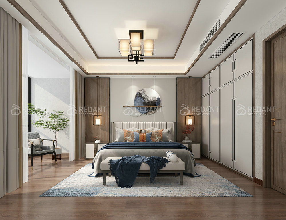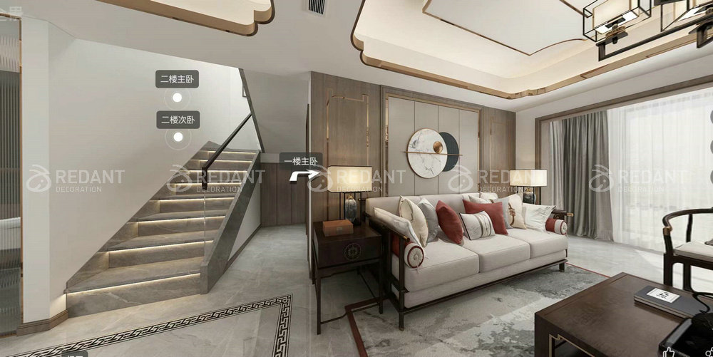 本方案是围绕现代中式为主题,适合于中国儒雅的三代人居住,以 传统文化的设计风格为主调。文化与传承是中式风格的基本特点。中式 风格在苏州一直都是流行的风格,新世代的苏州人对于中式风格有了自己的理解。本案客户是新苏州人,在苏州拼搏多年置换了这套三层顶复, 这套房子对于客户具有特殊意义,终于可以全家团聚在一起! 本案施工面积:219平方,总造价预计110万左右,主要材料为:木质楼梯、定制大理石、定制木饰面、硬包、定制刺绣等,在设计伊始, 通过和客户的沟通了解到客户是把这套房子当做长久居住的"家",所 以客户不希望有太多繁琐的造型,能够保留家庭的和睦氛围,所以这套 的设计理念就是"荣华不必富贵"。