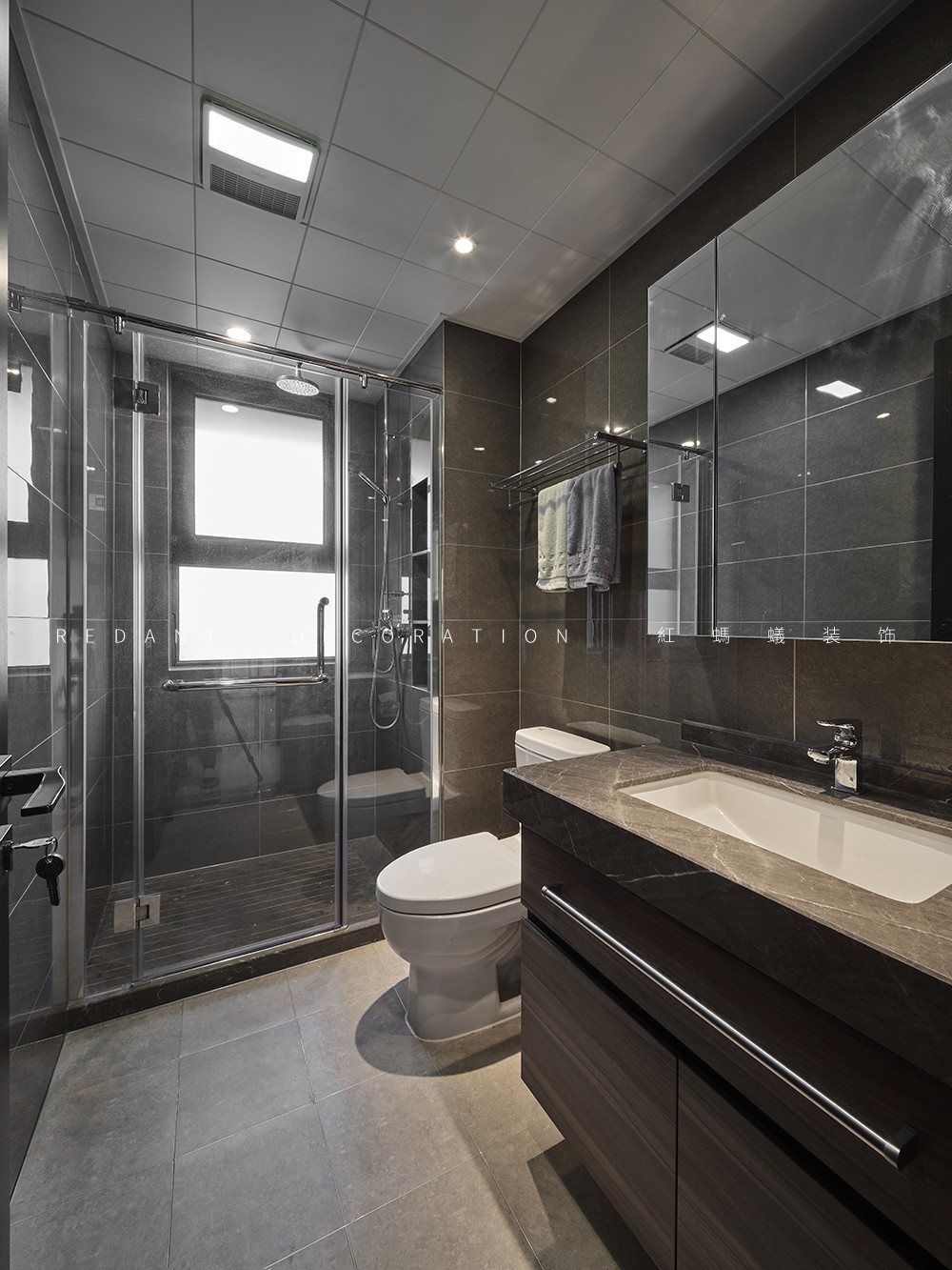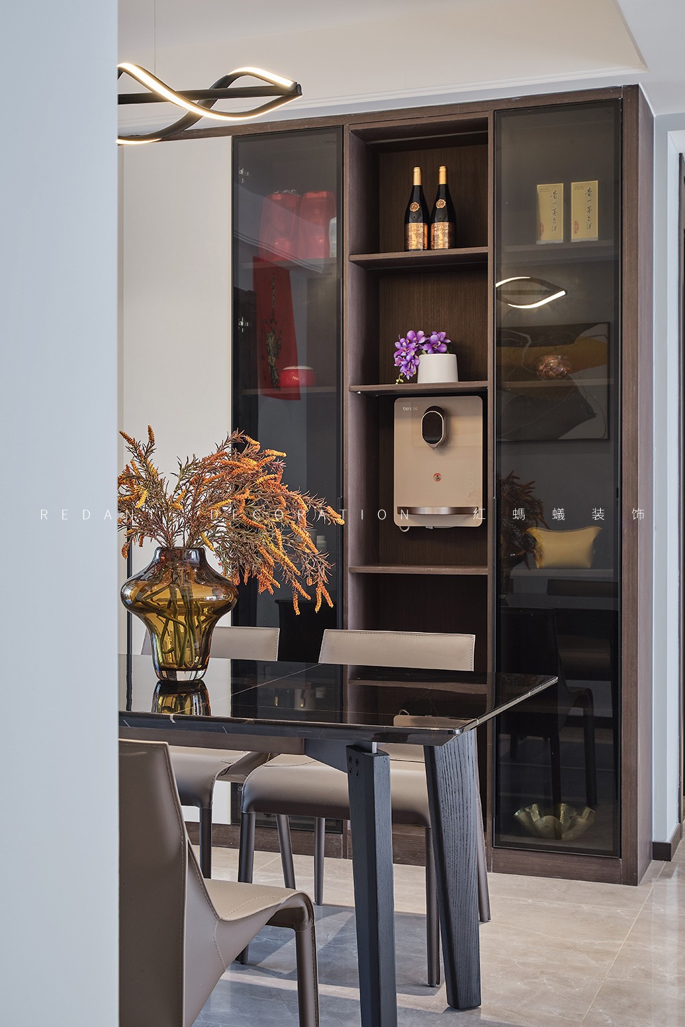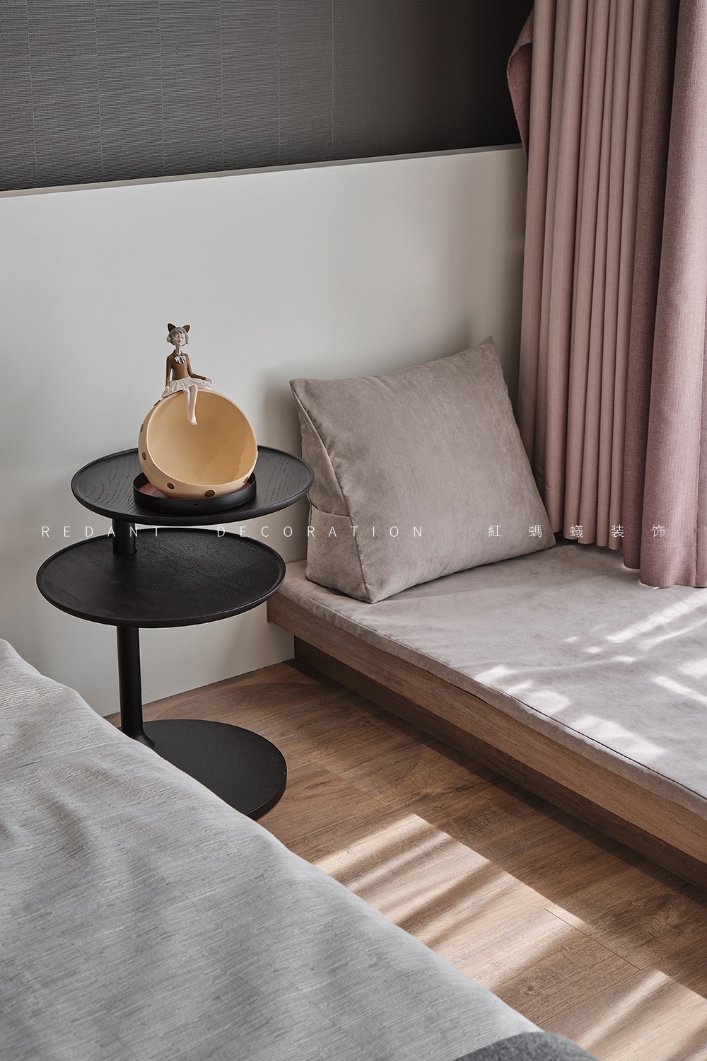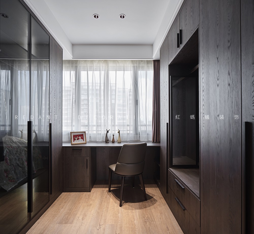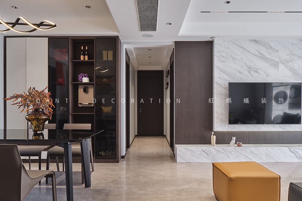 本案是140平的精装房,在原有的厨房卫生间不改动的前提下,尽可能的满足客户对现代极简风格的要求,通过无主灯设计,内嵌风口,超高房门,让整体设计风格简杰大方,空间布局上改动了主卧的格局,将原有的内卫门调整方向,将北面小房间纳入到主卧主卧的空间,让主人的生活方式得到极大的提升。客厅和阳台打通,整个客餐厅厨房空间通亮、简洁、舒适。色彩上采用的是灰色调深浅的搭配,窗帘配以局部的亮色做点缀,整个空间高级灰的同时也不失活泼。