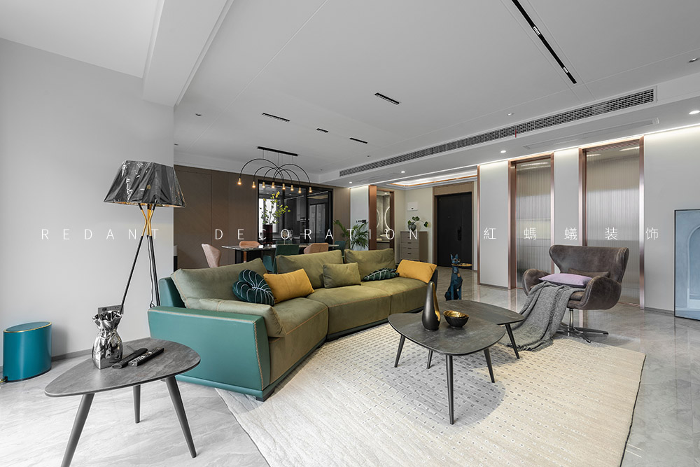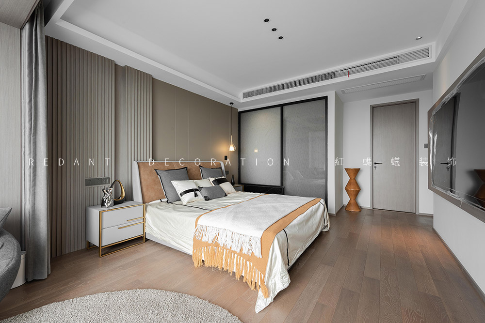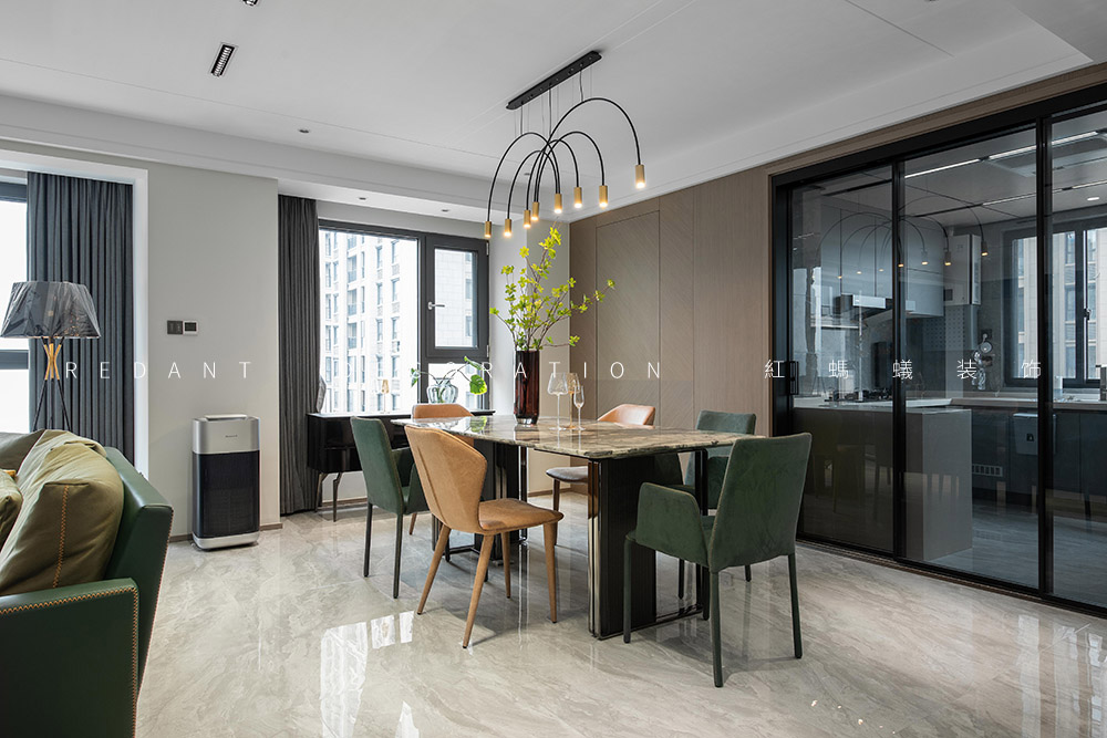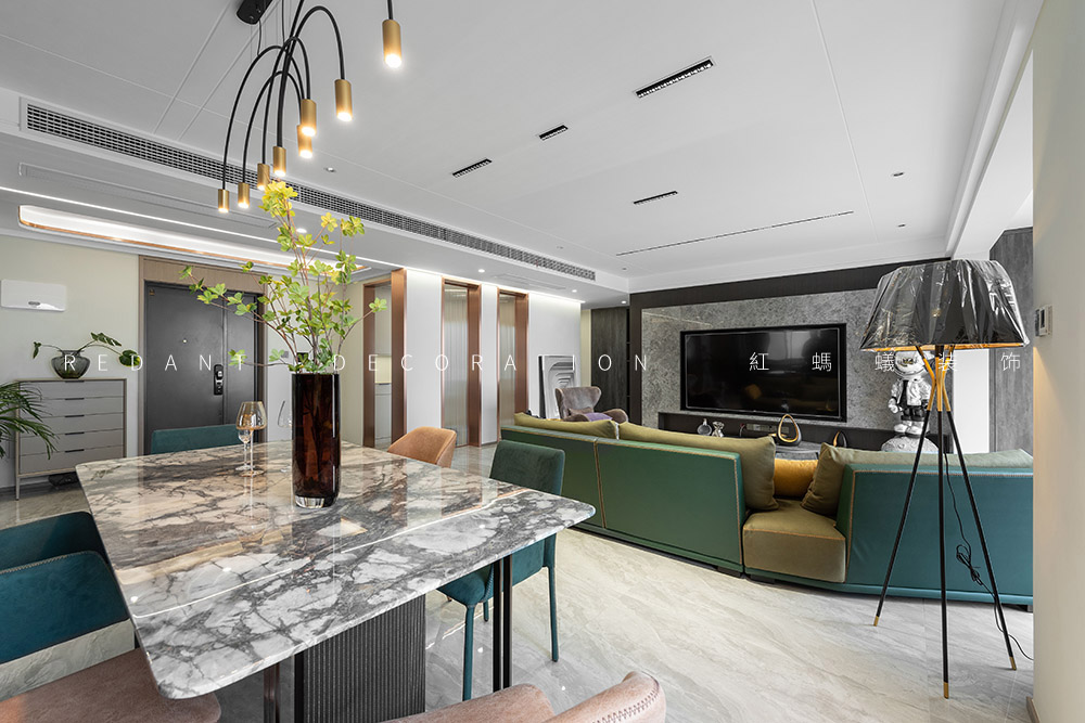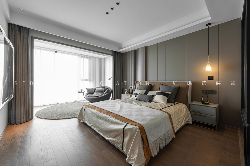 这是幸福的三口之家,业主是一对社会的精英人士。他们有一个可爱乖巧女儿,一家人都很喜欢模玩手办,对色彩不希望单一,喜欢三亚及厦门休闲浪漫的生活方式,希望硬装基调简单素雅,对色彩不希望单一,尽可能增添一些时时度假的感觉。经由沟通发现他们喜欢现代轻奢的感觉,但又不完全喜欢轻奢风,于是我的设计整体表达处在一种“已至 未满”的状态。主要运用材质有通体瓷砖、多层地板、天然大理石、木饰面、硬包、墙布、艺术漆等。在简单且素雅的空间中寻找一种更适合居住者休闲度假的生活状态。