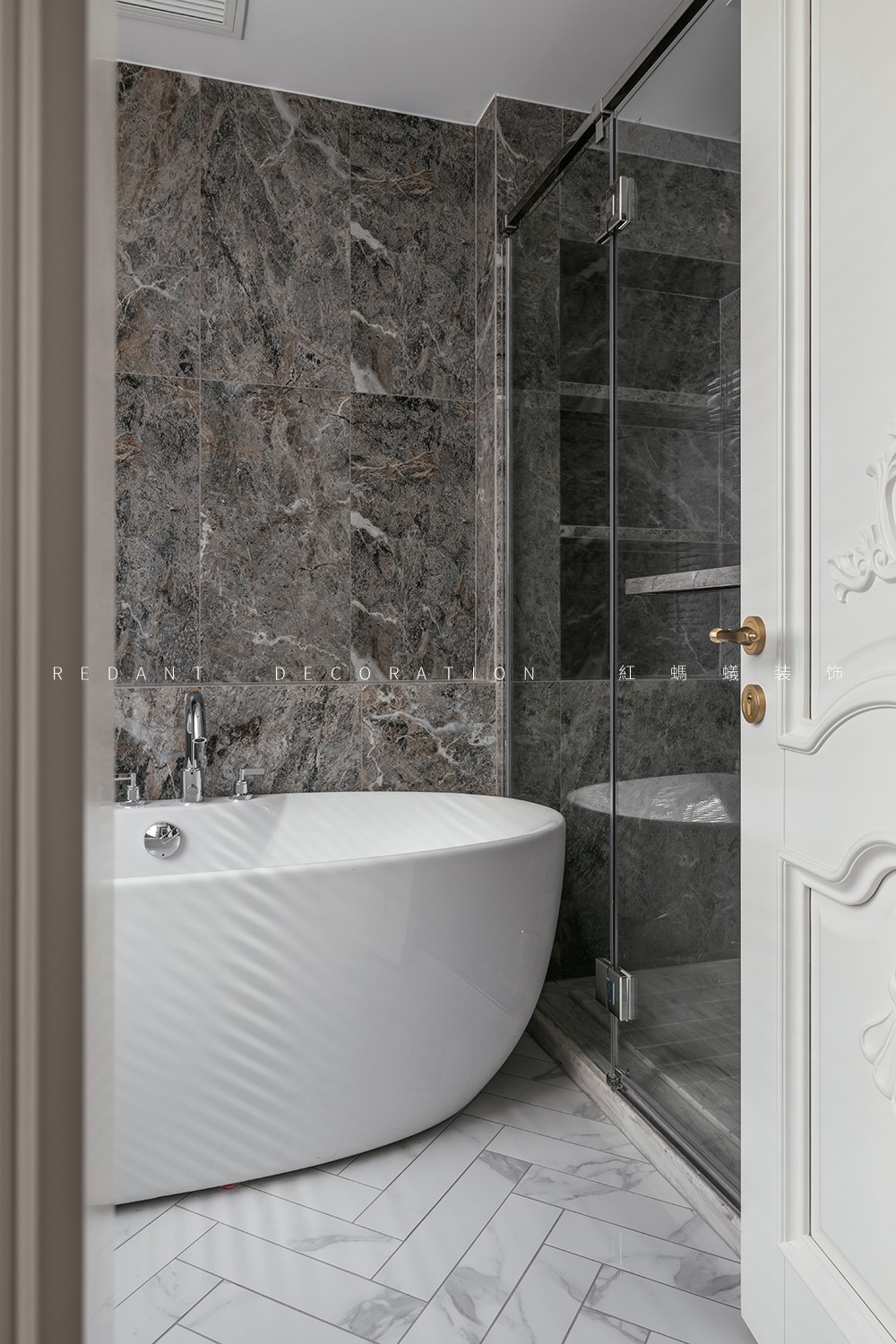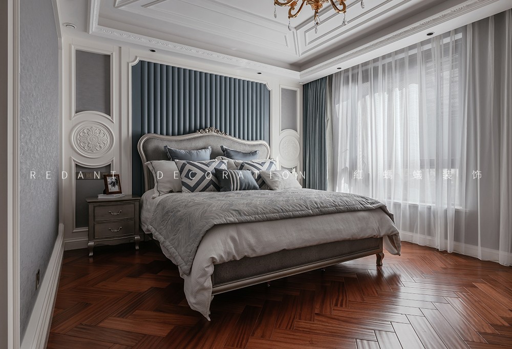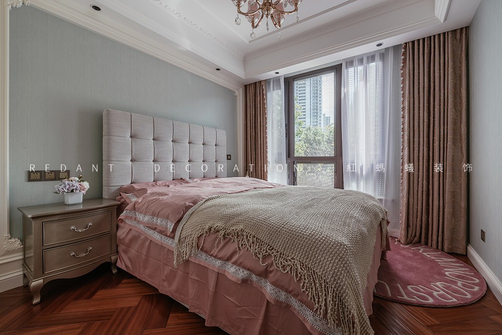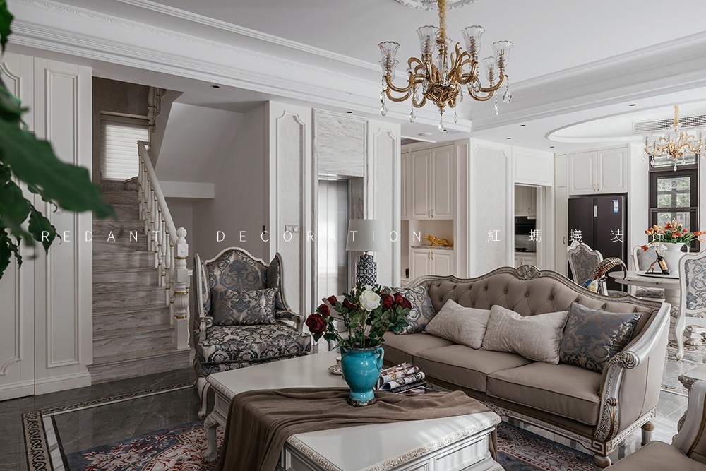 这是一个低调奢华的欧式空间,餐厅设计在颜色上以浅色为主,整个空间没有加入多余的装饰,白色描金实木的餐桌搭配白色的刺绣花纹椅子,既时尚又大方。吊顶的设计采用了两个圆圈重合的设计,大方又富有层次感,餐桌上的鲜花又显几分温馨。客厅经典的黑与白只是背景装饰的基调,黑色大理石才是这个舞台的主角层次分明有显示着主人的与众不同。多层次的吊顶,缀以水晶球的吊灯,仿佛冬季里轻舞飞扬的雪花,白色描金的家具在灯光的映衬下彰显着它独有的精致。繁花似锦的壁纸,奢华的装饰镜,敦厚精美的床,都能带出古典欧式风格特有的质感。卧室的整体感觉端庄优雅,仿佛将人带入十八世纪保守意大利贵族的舞会中,浪漫的细节装饰令人赏心悦目,也是最能体现身份地位的。每一处都是那么光鲜照人,无一处不为之惊叹不已!