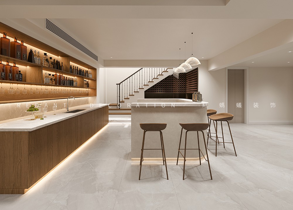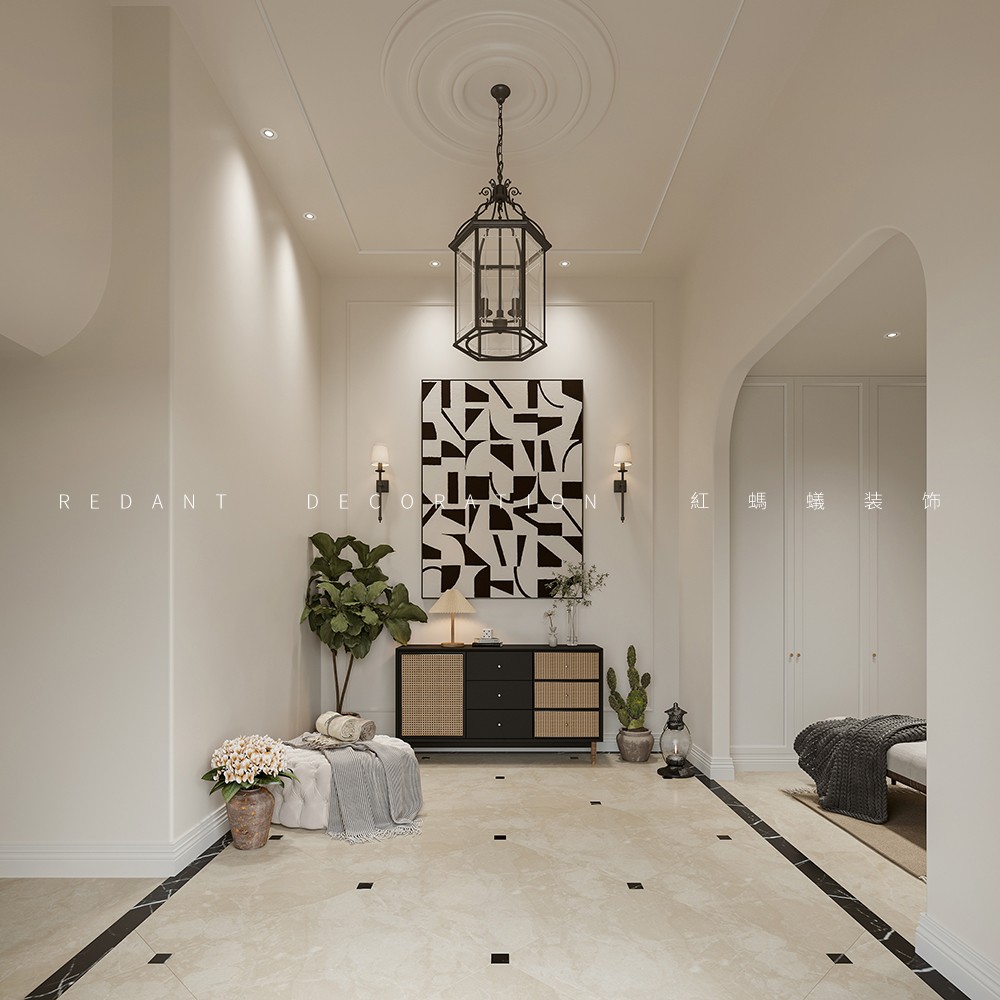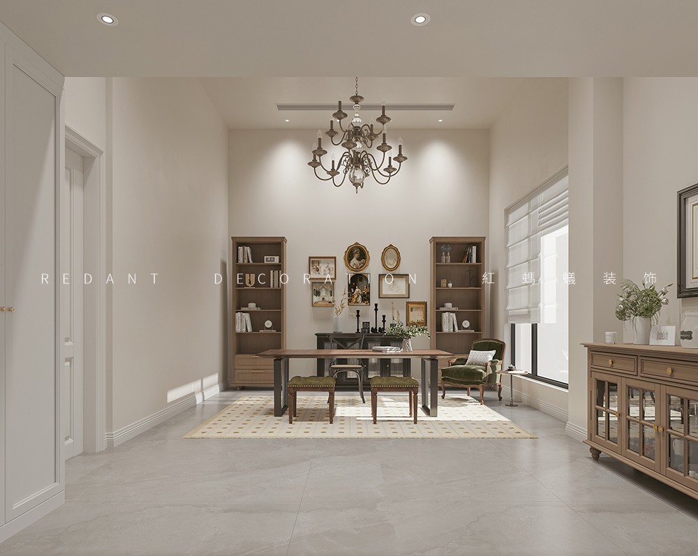 此项目是一幢叠加别墅,地下两层,地上二层。业主一家五口人(3个小孩),有长期国外定居的经历,对生活有一定的品质追求,又喜欢简单浪漫的生活方式,所以我们在设计时,大多以米色系涂料做为主色调,再搭配深色家具,部分挂画作为点缀,在满足功能的前提下,丰富软装元素,为业主打造一个舒适的空间氛围。