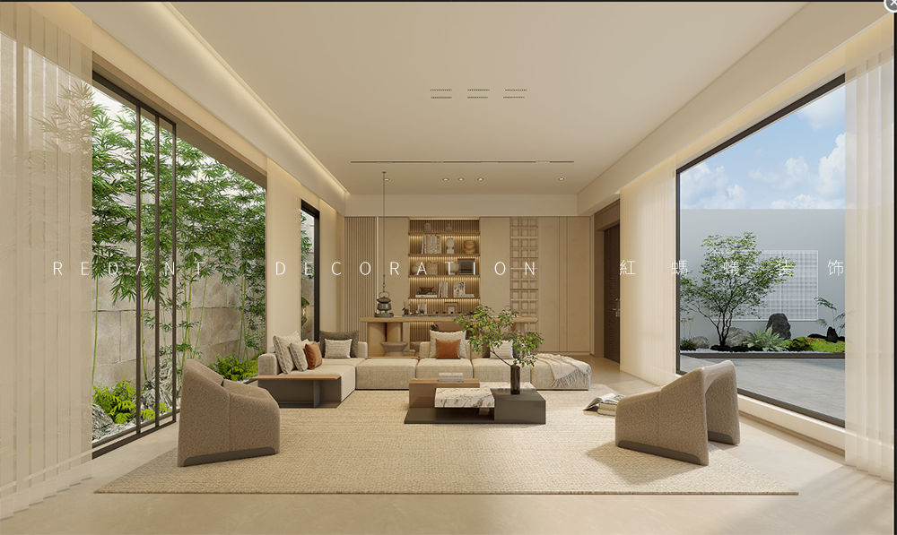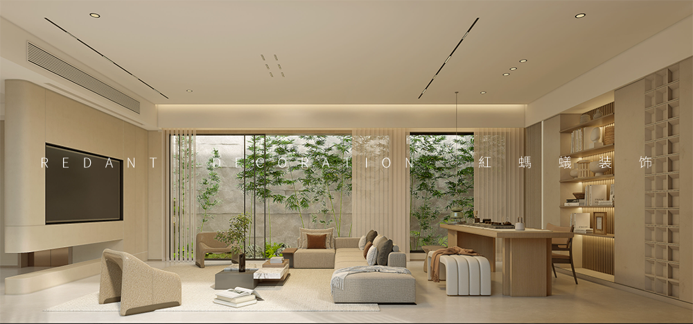 此项目是一幢五层别墅,地下两层,地上三层。家的设计是对人与生活的解读和理解,是人与空间共融的共生形态。设计试图呈现一个自然、舒适、现代化的艺术居家空间。客厅是极致设计美学与当代艺术的融合,朗阔的空间透露着一种安静的力量。无需多余的装饰,两面落地窗尽显张力,把庭院四季景色囊括到室内中,餐厅用一盏洁白的云石吊灯聚合了整个空间,大理石餐桌搭配皮质餐椅温暖浪漫,大面积的落地玻璃窗,与户外花园相通,延伸视觉的艺术之感。在现代主义抽象画和四季变化的映衬下,品尝精致的美食,分享生活的喜悦,营造出一个心灵与自然对话的艺术环境。厨房与餐厅相通,两道可开可合的隐藏式玻璃移门做分隔,采用排列式的布局设计,采光井延伸的长吧台提升了空间的使用及交互动感。
