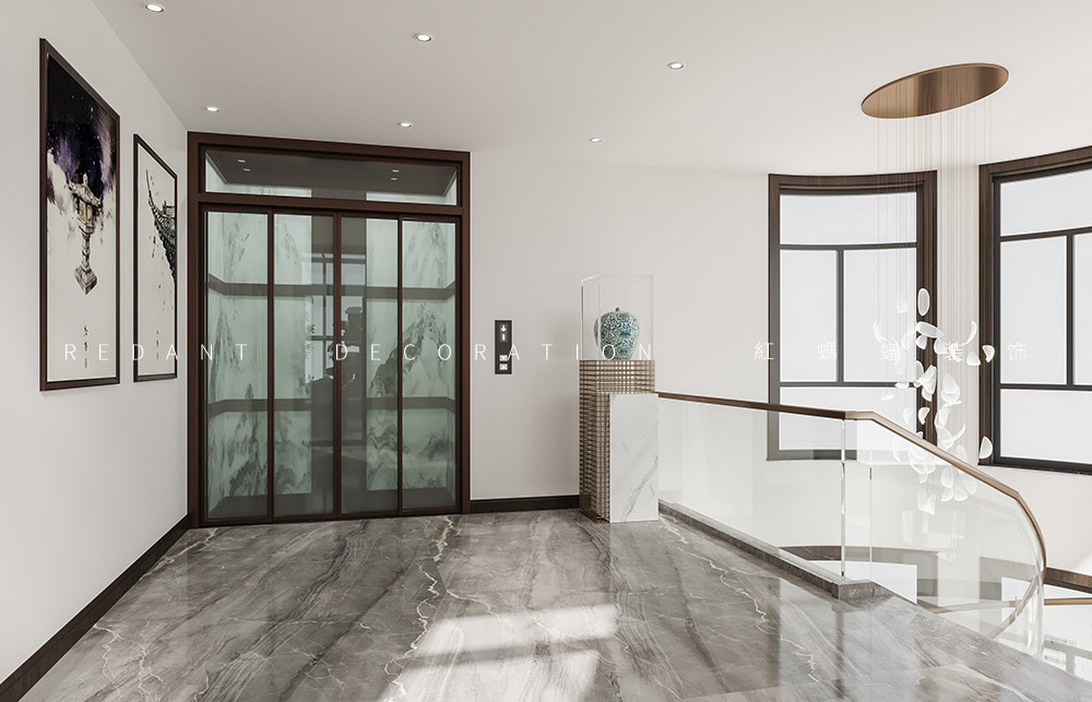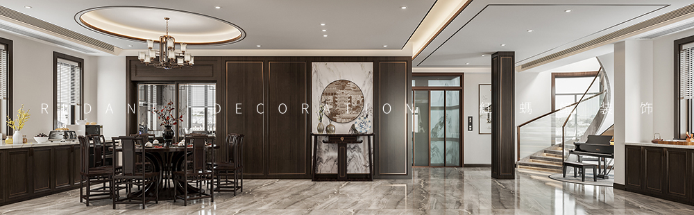 现代新中式讲究讲究极简之美,将中国古典文化的精髓融入生活当中,以现代人的审美需求来打造富有传统韵味的事物。本案我们将楼梯位置整体移动到八角窗阳台处,设计成旋转楼梯,增加了楼梯得观赏性以及舒适度,同时扩大了厨房得使用空间。在空间布局中,取一点为轴心,两边的元素搭配,色彩组成,空间比例呈对称形式,以此塑造出一种“稳重静谧”的对称美。