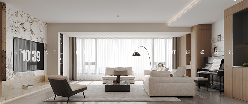 全屋以白色的大平顶为主,一是为了方便家里安装使用的三恒系统,二是体现大道至简,天然去雕饰的家居哲学,在光的晕染下,大面积的天花留白成为空间的反光板,消融场域边界,自此,场景与物象达成和谐的平衡。舒展的情绪如湖上涟漪,层层透析。