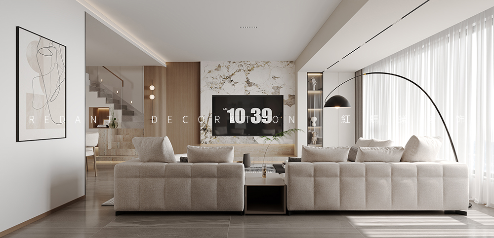 此项目是地下一层,地上两层的中叠别墅,地下室和楼上是分开的户型。家不是冰冷的盒子,而是揉合了光、色彩与空间后,赋予着生命的力量,以自然、温润、温度的理念方向,通过轻装修、重装饰的空间布置,将居住者的精神和生活美学融入房子。初见男业主时,便因主人温润沉稳的气质奠基了房屋整体格调。