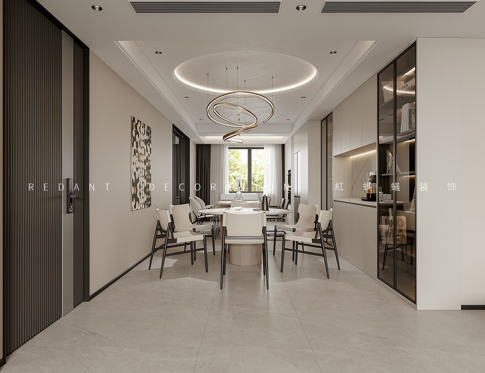 此项目地址为江南境秀小区,风格为现代轻奢,装饰面积182平。
