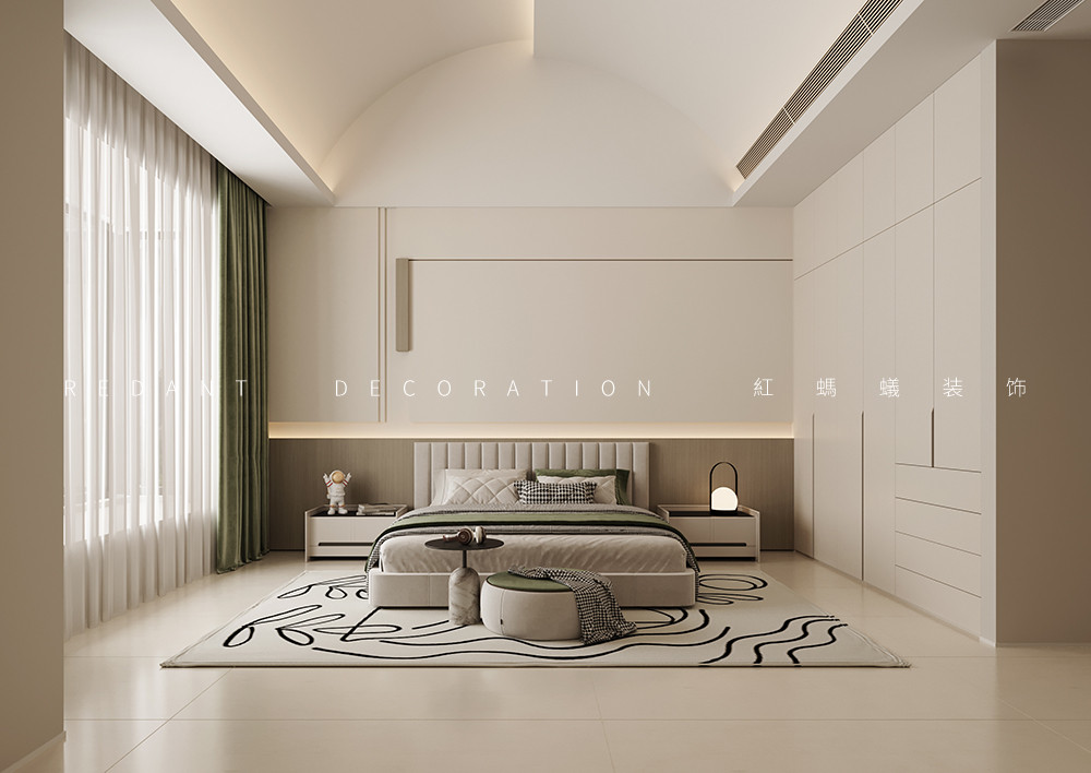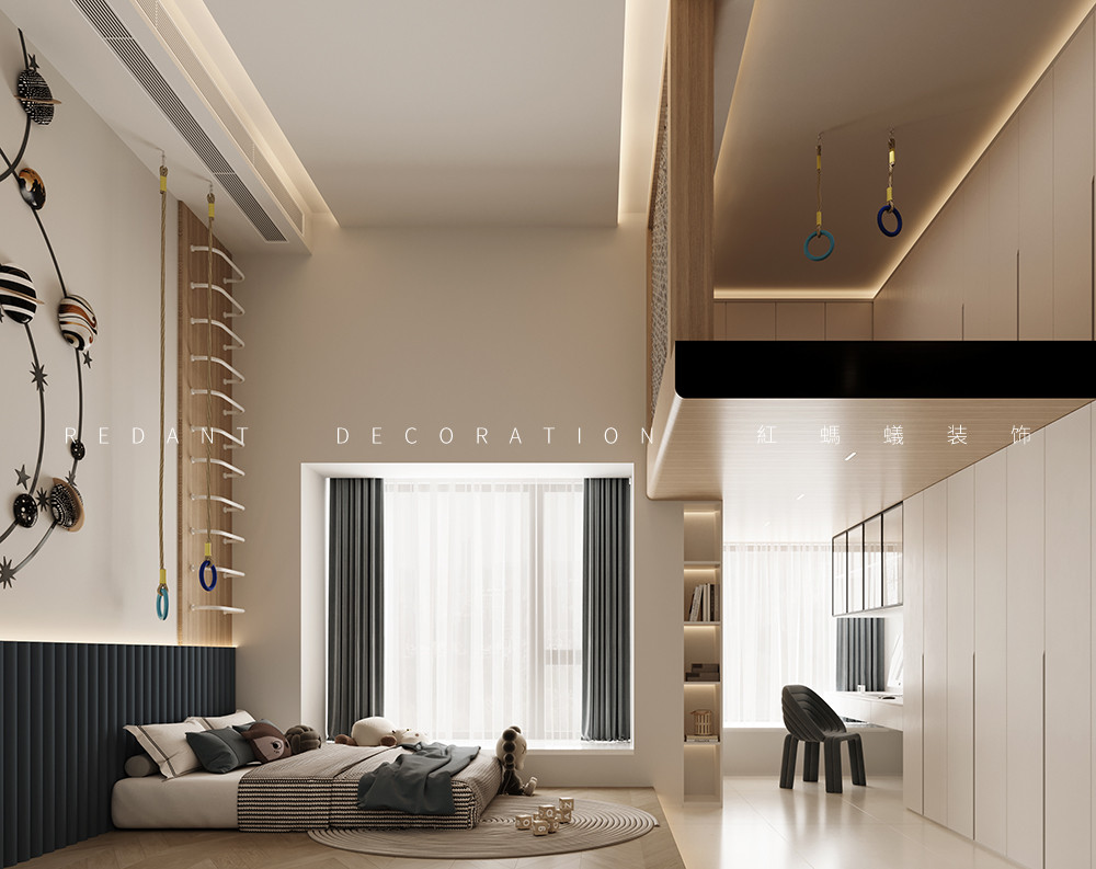 主卧空间宽敞,配备独立卫生间,保证主人的隐私与便利。内部设置舒适的大床、衣柜和休闲区域,营造安静、舒适的休息环境。次卧可根据实际需求,作为老人房或客房。布置温馨舒适的床铺、衣柜和必要的家具,空间布局合理,满足基本居住需求。男孩房以男孩的兴趣爱好和成长需求为出发点,设计充满活力与个性。配备书桌、书架满足学习需求,定制趣味十足的儿童床和衣柜,充分利用空间打造专属的娱乐区域。