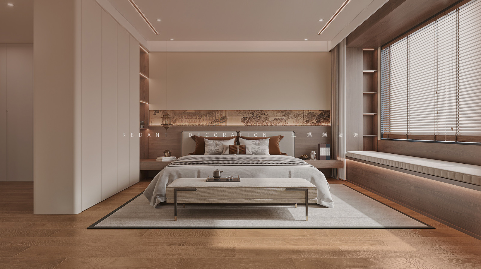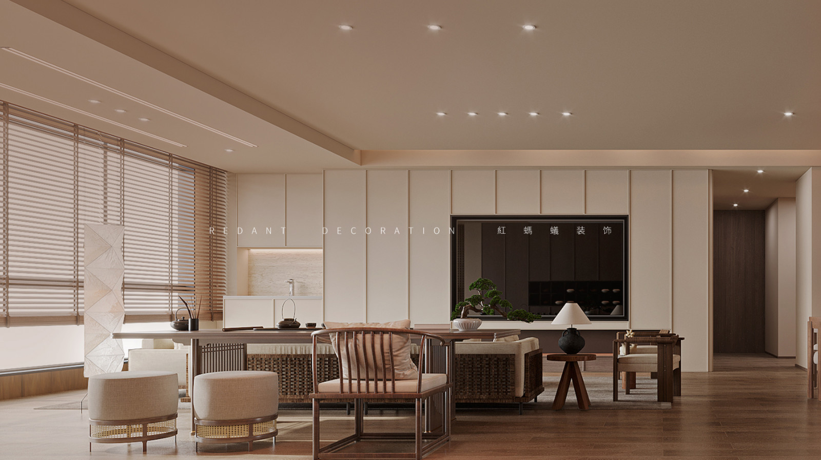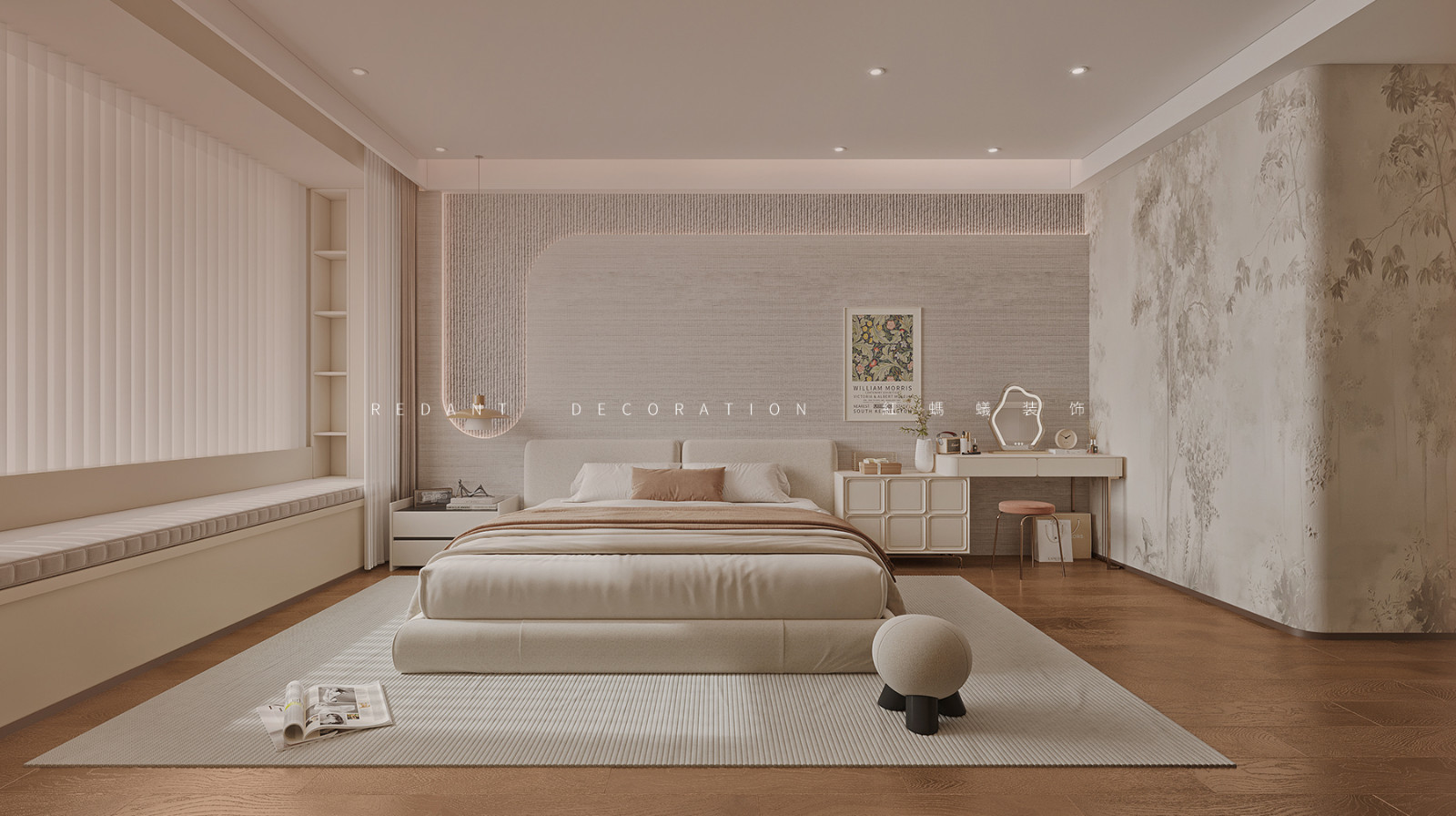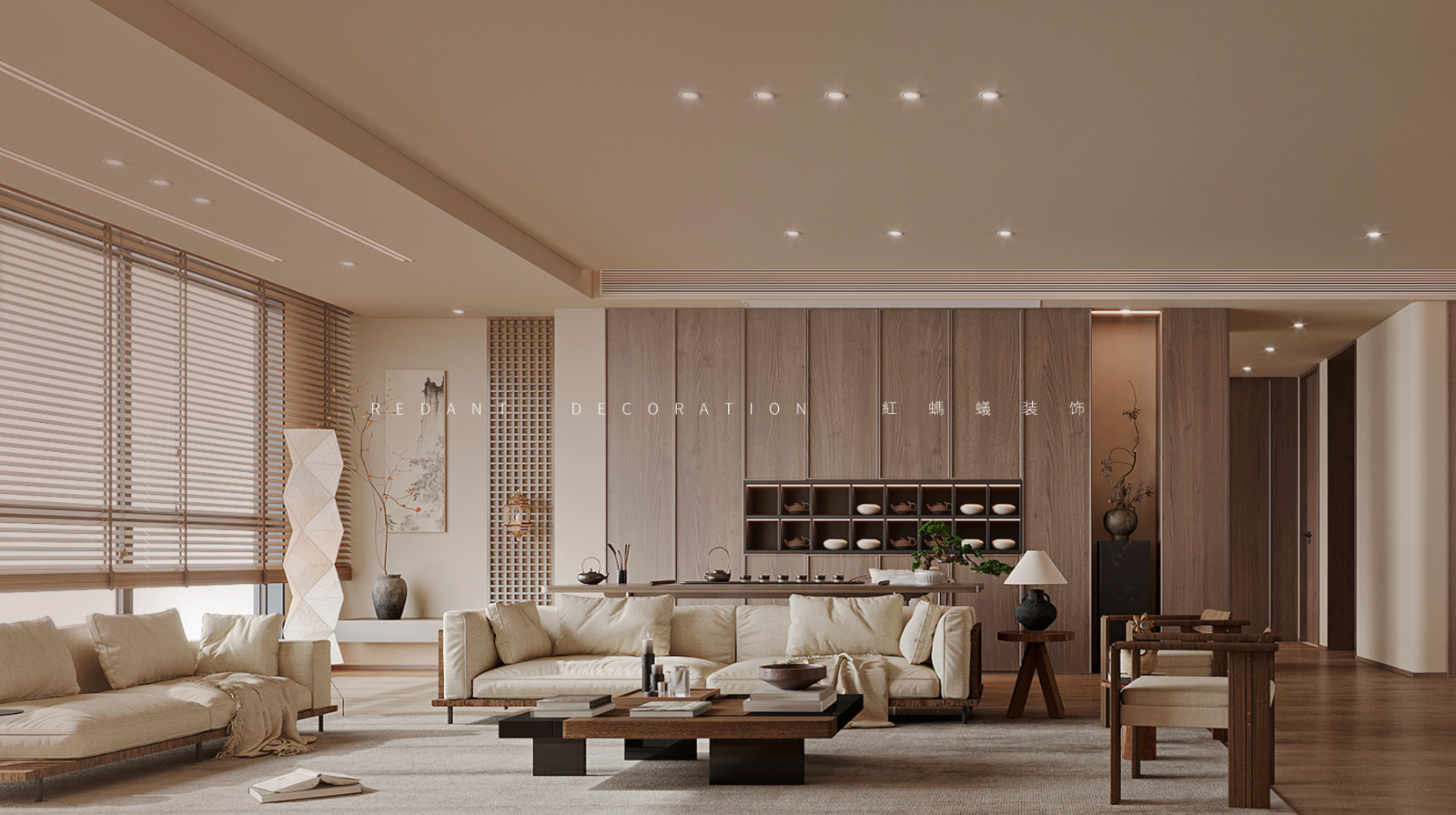 开阔的起居空间拥有良好的采光,中性色调铺满视野,让人倍感舒适
