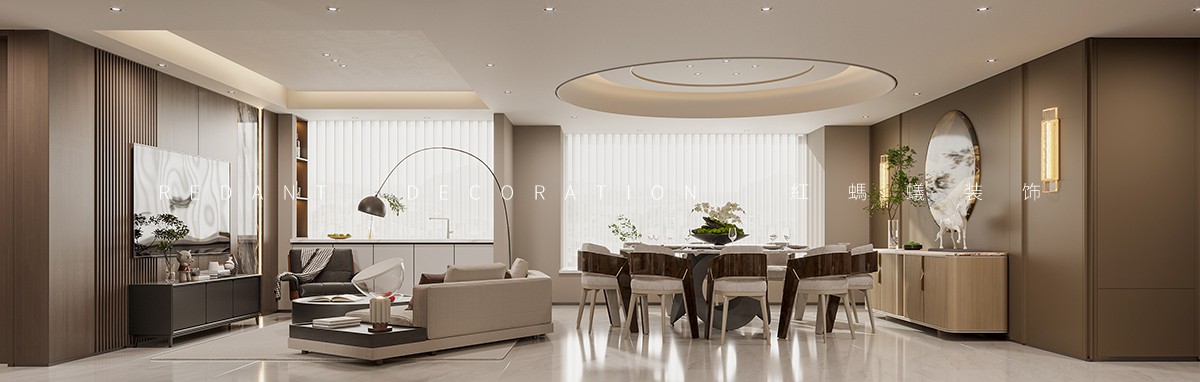 本案以 “精致尺度,奢雅日常” 为核心,为 168㎡空间注入现代轻奢质感,重点打造可容纳 12 人的阔绰餐厅。