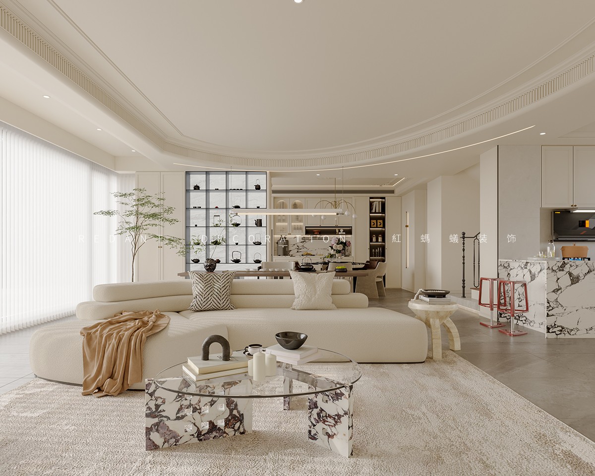 紫薇花开 | 400㎡现代奶油风格别墅装修效果图