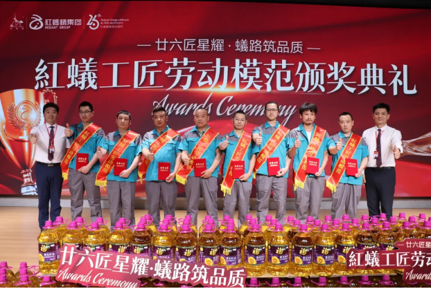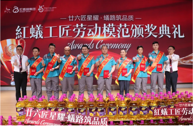 典礼最后,集团为所有获奖工人送上米、油暖心礼品,以最朴实的关怀致敬他们的辛勤付出。这份表彰,不仅是对匠人之心、劳模精神的致敬,更是向全体工程团队传递红蚂蚁“高品质交付”的追求。我们期待以榜样力量激励更多工匠精进技艺,持续强化工程团队的施工能力与工地质量管控能力,让“品质交付”成为红蚂蚁的金字招牌。