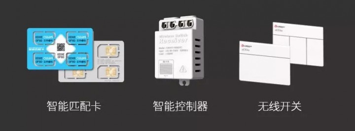 本产品由智能匹配卡、智能控制器和无线开关组成
