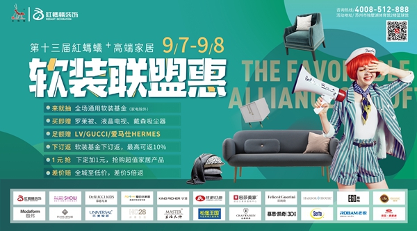 如果说水泥钢筋是房子的筋骨,那么软装就是房子的灵魂。近年来,85后90后消费群体崛起,随之带来的是消费需求的升级,人们对居住环境的要求越来越高,对软装的重视程度与日俱增。软装的搭配,可以将清冷的样板间变成一个彰显个性与品味的温暖居所。面对消费者对软装需求的急剧增加,红蚂蚁装饰携手国内外一线高端软装品牌举办第十三届红蚂蚁+高端家居软装联盟惠,为广大消费者提供一个品质、便利和钜惠兼备的一站式购物平台。本届软装联盟惠传承以往12届的高性价比传统,让苏城人民在享受抄底价的同时,只要签约就能一元抢购超值奖品,还有联单奖、满额奖等福利优惠,Gucci、LV、Hermes国际大牌满额即赠。感兴趣的消费者可于9月7日至8日前往独墅湖体育馆二楼篮球馆参加选购活动。
