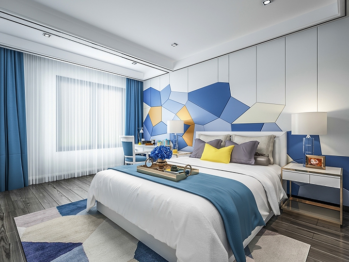 卧室的软装包括较多的内容,在墙面上布置软包就是一种非常有创意的做法。通常我们装饰墙面都是用内墙涂料或者纯纸壁纸,在墙面上设计柔软的软包能够将卧室整体的空间立体感提升到一个全新的层次。布置卧室软包的时候要注意颜色和材质的搭配。软包质地柔软,应该选用暖色调为宜,但是尽量不要用明黄、橘红等比较鲜艳的颜色,这样会刺激用户的眼球,让人长期处于亢奋状态,不利于休息,淡雅的米咖色和米黄色就是不错的选择。材质方面,布艺或者皮质都是可以的,如果家里卧室的采光比较好,有阳光直射在墙面上的情况,则尽量不要深色的皮艺软包,这样很容易让软包表面开裂,影响整体装修效果。