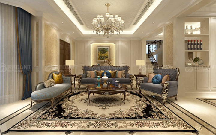 2. 客厅顶棚的色彩宜轻不宜重,地面宜采用耐脏、易清洁、光泽度高的石材或木地板。