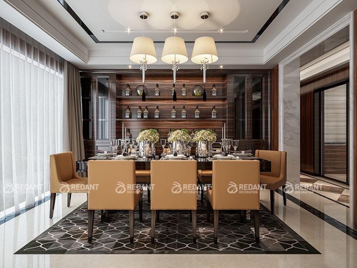 新古典餐桌椅,为餐厅营造一个极好的居室氛围,让你感受浓郁的现代与古典的碰撞感。具有时尚感线条的斑马纹木饰面不仅拉大了视野,亦呈现与众不同都会时尚感。时尚、低调、奢华、古典达到平衡,所有平衡形成综合体,在设计师安排下家居飨宴油然而生。