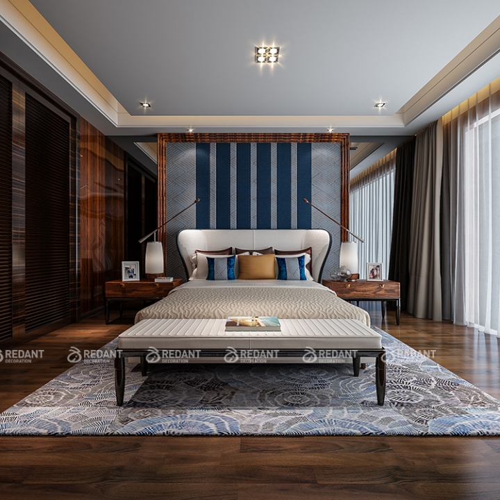 从颜色的选择上来看,新古典风格常常选择棕色、金色等作为装修的主色调,有时也会加入一些白色的元素,这样的色彩搭配使得新古典装修风格能够给人一种现代而内敛的气质,新古典居室内白色调的参杂,会让整个空间的亮度提高不少,整个装修设计的包容性也更强,让居住于此的人拥有非常好的舒适感。而金色、暗红色等本身就是比较华丽的颜色,更能够凸显新古典装修风格的古典韵味。