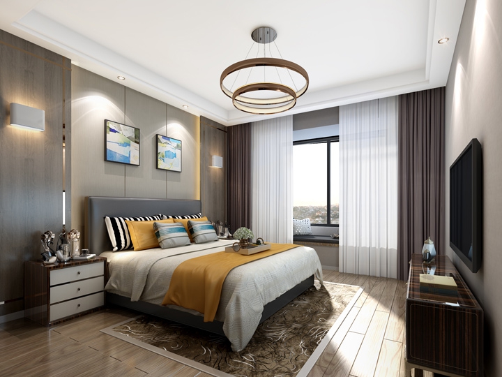 卧室在设计上色调统一,暖白色的灯光让整个卧室的气氛更为温馨。