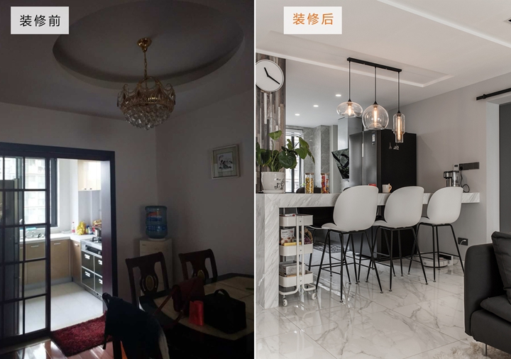 导语:本案是苏州装修公司红蚂蚁i装饰做过的一个二手房翻新的案例,高层,户型方正,三开间朝南,得房率也很高,但是由于之前的装修颜色以及空间规划不合理,导致屋内采光不好感觉压抑。