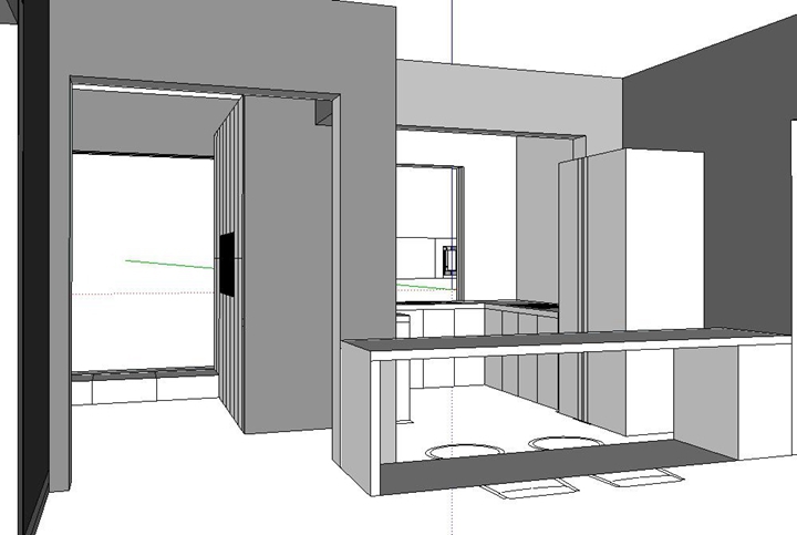 布局上,厨房、餐厅的动线关系做了适当的调整。男女主人的父母康健都居住附近,所以他们做饭频率不高,厨房也就作了开放式厨房设计,也比较符合当下年轻的喜好。而且女主人偶尔情调下厨做饭,可以跟在吧台喝酒的男主人互动,增加家庭氛围,很适合新婚的小夫妻。不过话说回来,你有没有被后面的谷仓门闪到了呢?