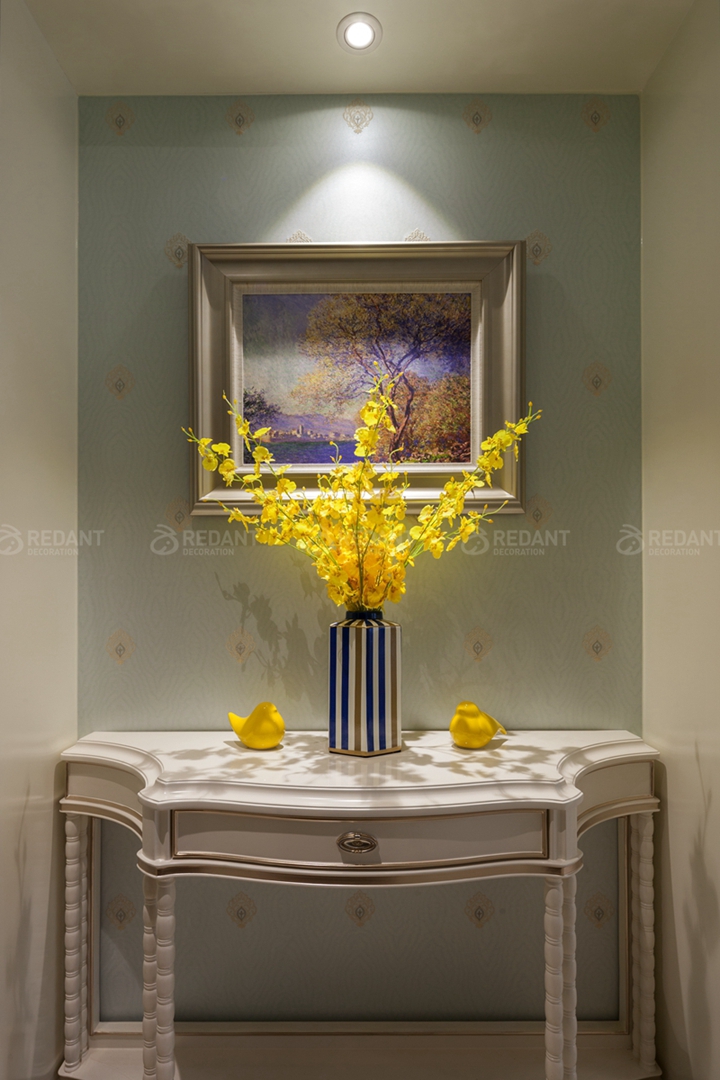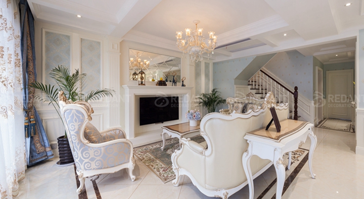 本案出自常熟装修公司红蚂蚁装饰,风格为轻法风格,在布局上突出轴线对称,恢弘的气势,豪华的居住空间。人们装修时总希望在经济、实用、舒适的同时,体现一定的文化品位。
