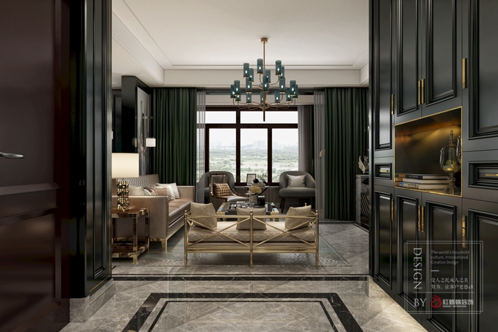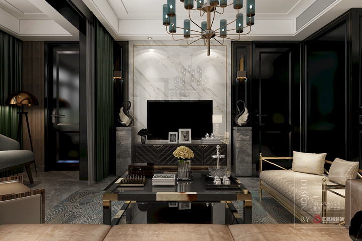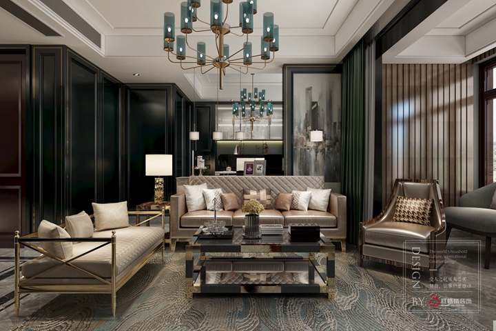 基于业主对家的品质有一定的要求,主要营造出时尚博主的感觉,整个硬装以墙板金属线条线条来凸显层次,软装来衬托,所以在这套作品运用了比较难驾驭的青色作为点睛之笔。