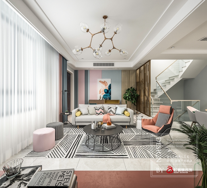 导语:本案出自红蚂蚁装饰,是一套北欧风格的200平的联排别墅方案。北欧风格色彩搭配之所以令人印象深刻,是因为它总能获得令人视觉舒服的效果——不用纯色而多使用中性色进行柔和过渡,即使用黑白灰营造强烈效果,也总有稳定空间的元素打破它的视觉膨胀感,比如用素色家具或中性色软装来压制。