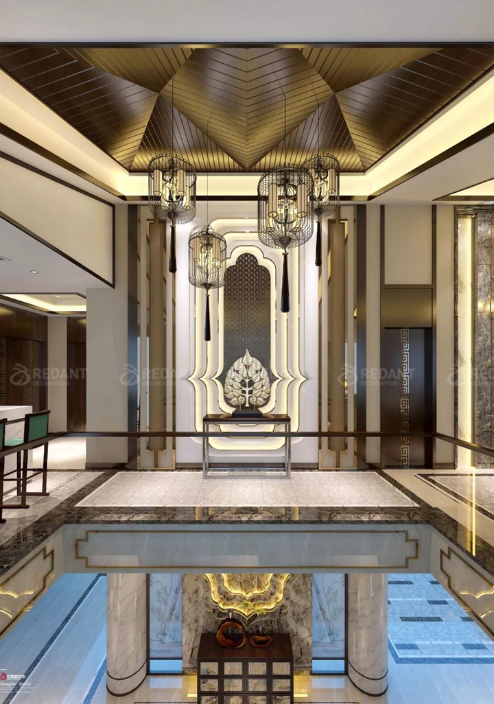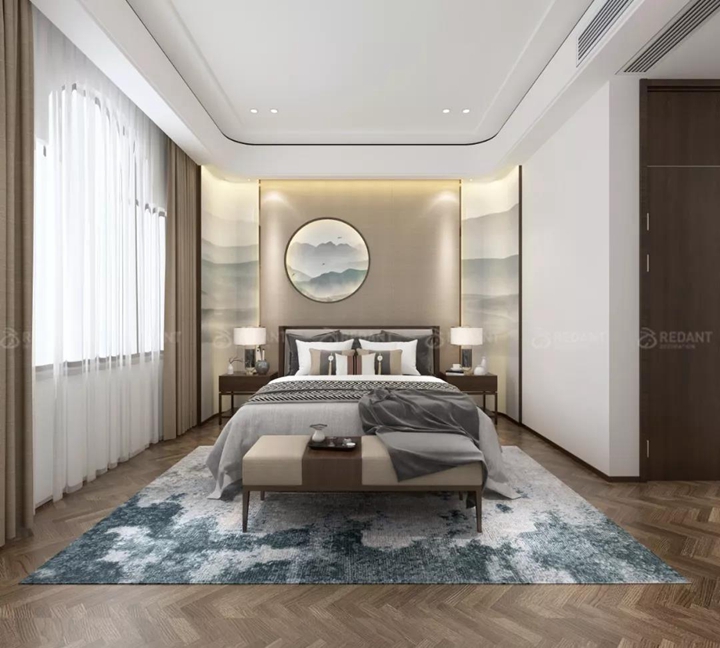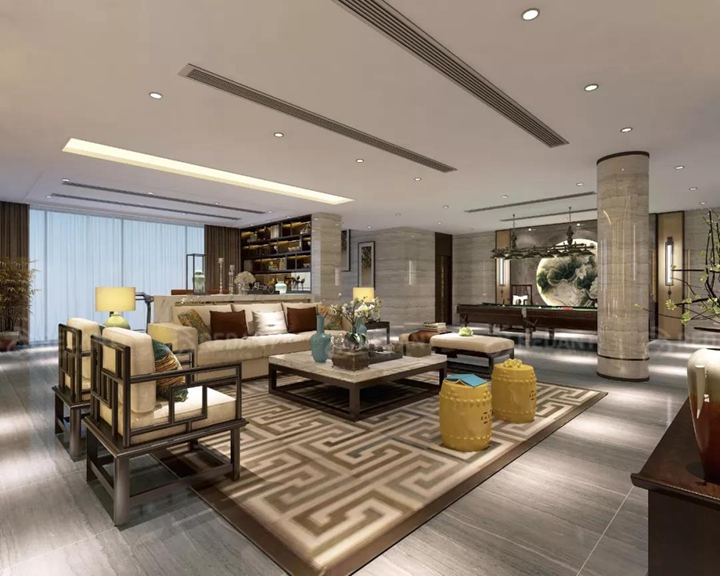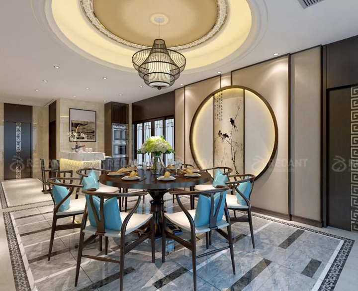 新中式风格还继承明清时期家居理念的精华,将其中的经典元素提炼并加以丰富,同时改变原有空间布局中等级、尊卑等封建思想,给传统家居文化注入了新的气息。更多苏州别墅装修案例请关注红蚂蚁装饰官网(www.hmyzs.com)。